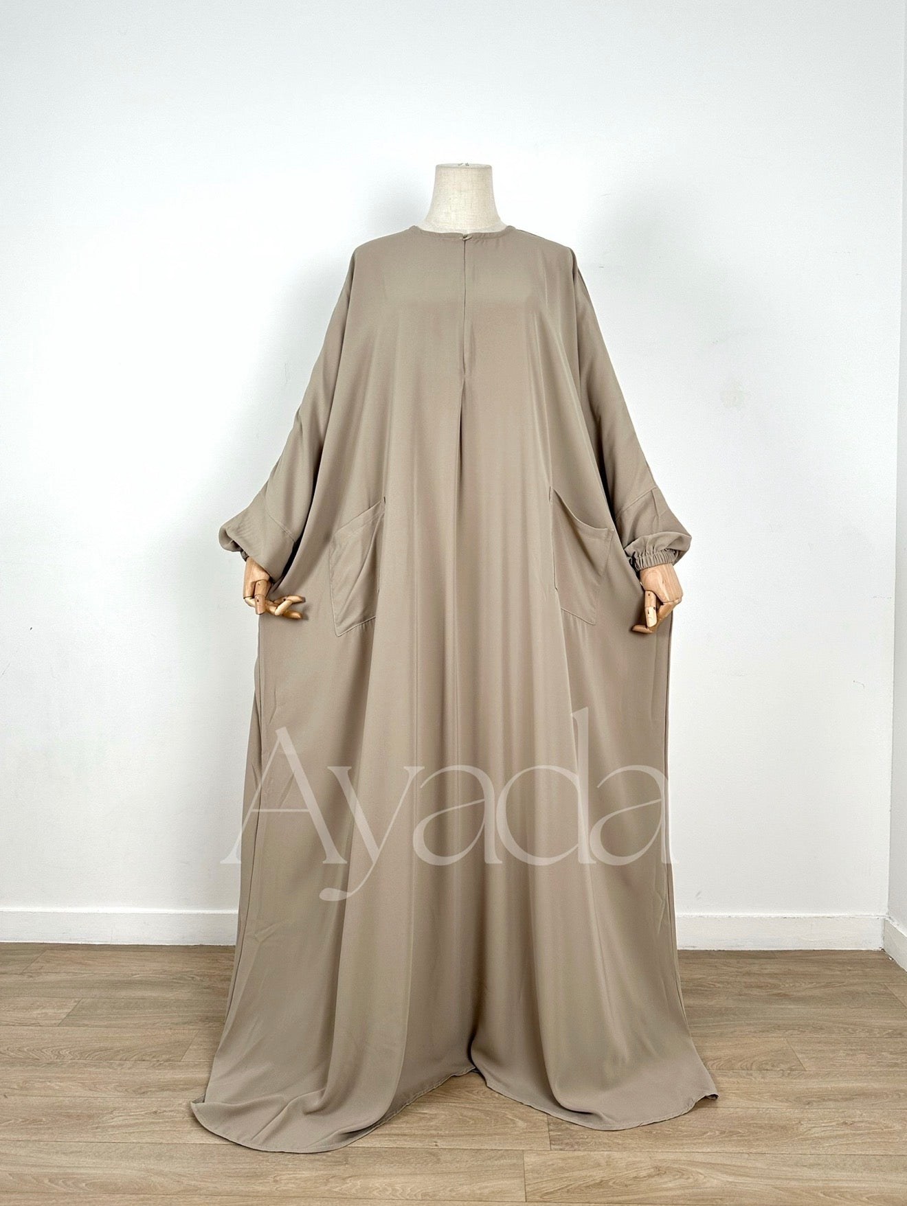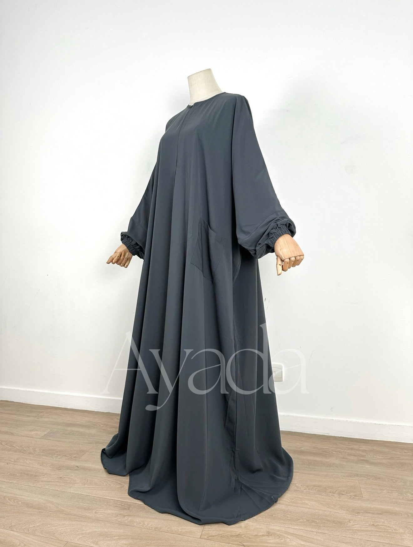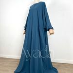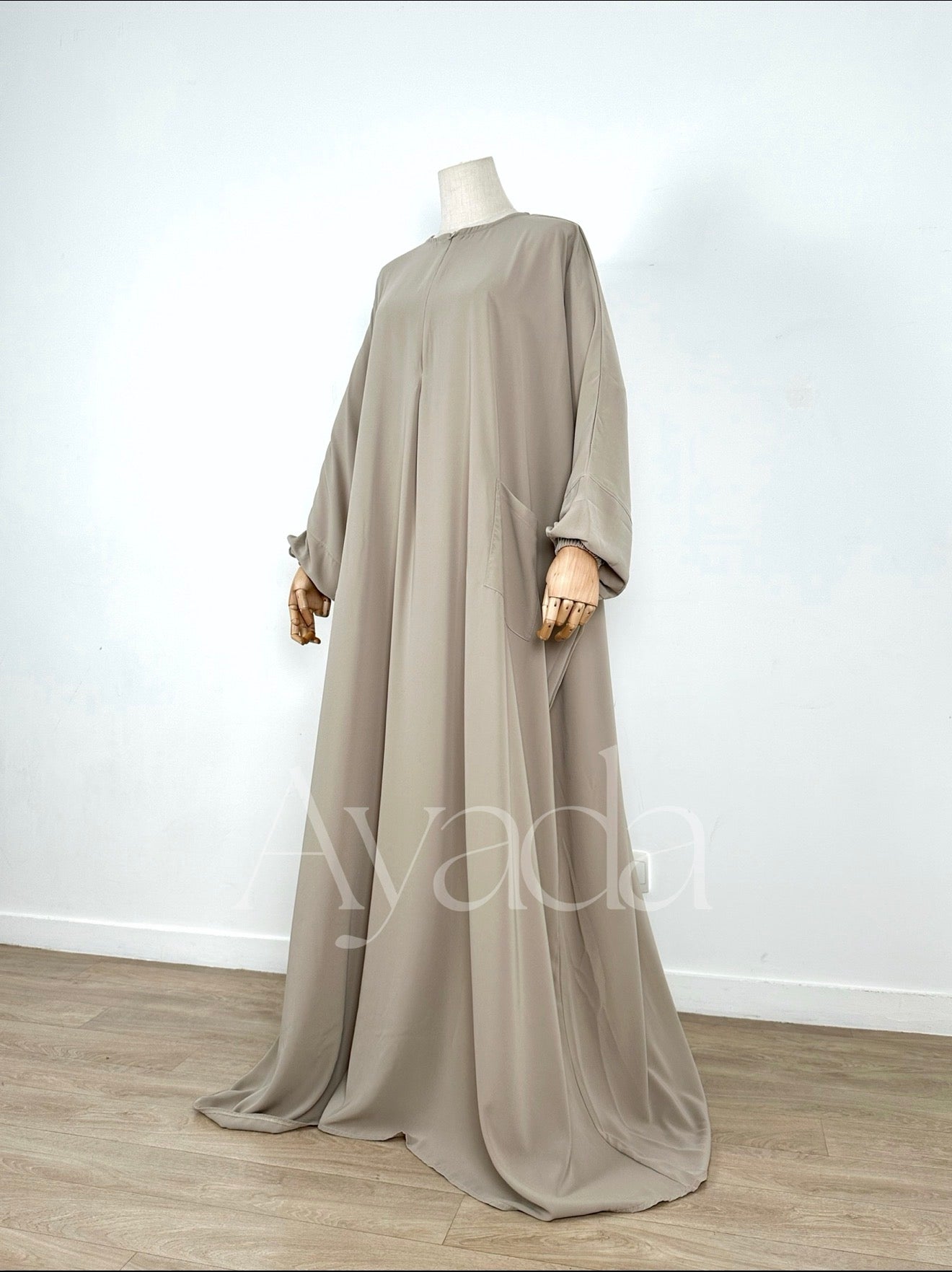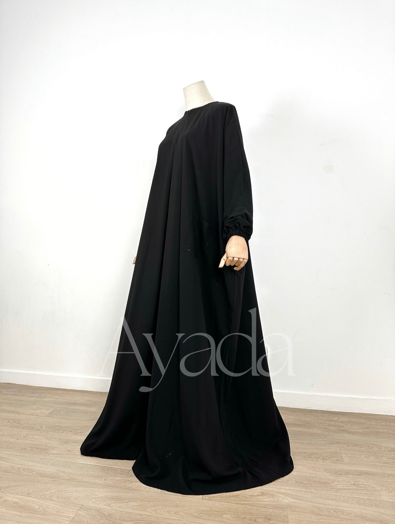 Nous avons l'honneur de vous présenter notre toute première création, la Abaya Haya, une abaya simpliste, moderne, classe, mastoura, élégante, dans une coupe demi-saoudienne, qui deviendra votre abaya préférée