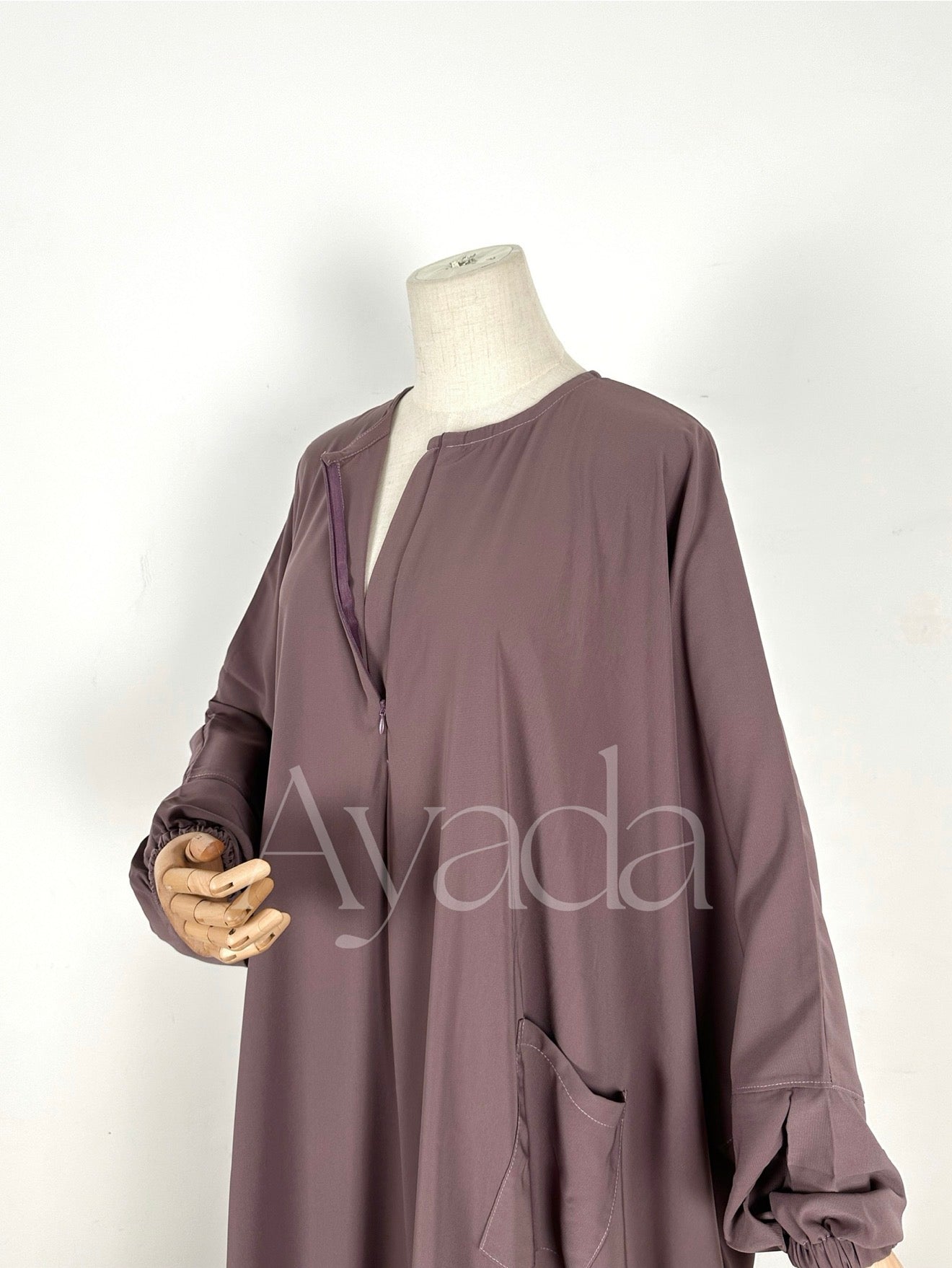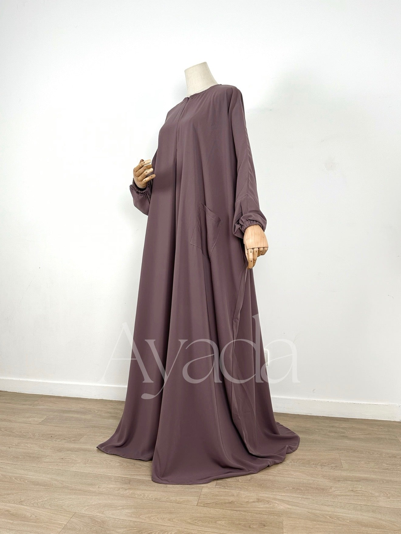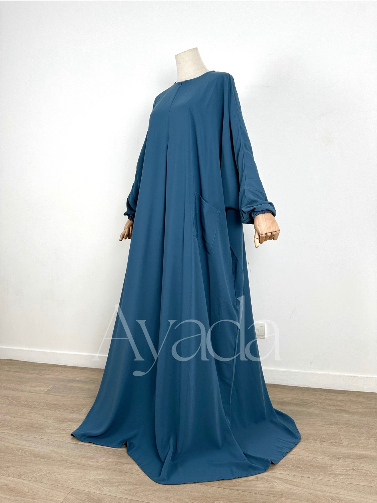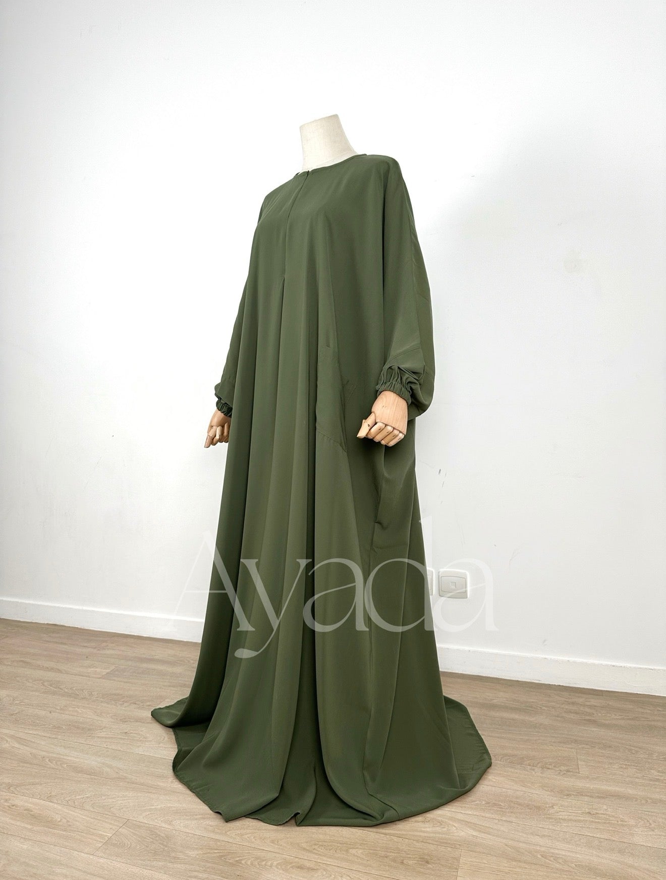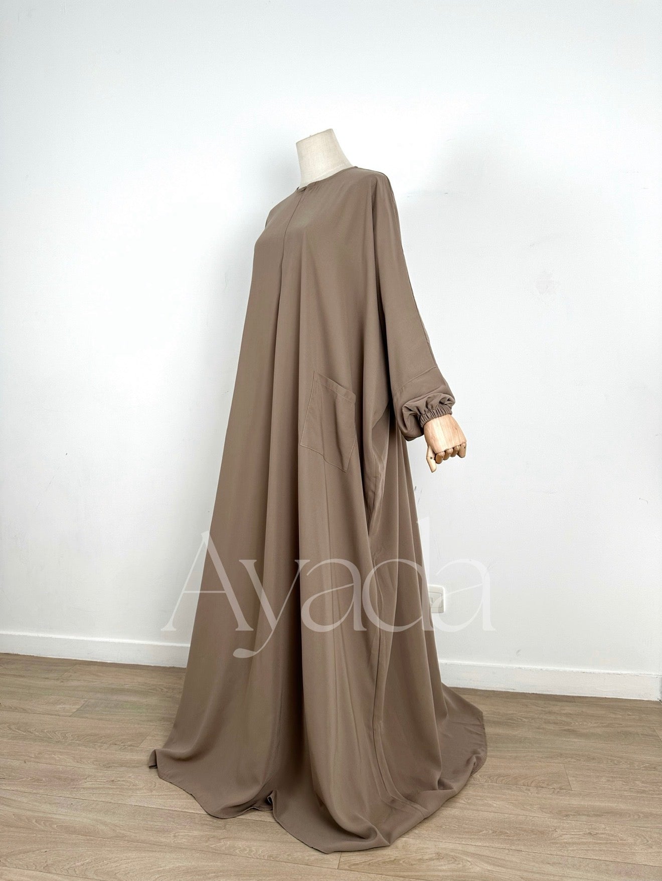 Nous avons l'honneur de vous présenter notre toute première création, la Abaya Haya, une abaya simpliste, moderne, classe, mastoura, élégante, dans une coupe demi-saoudienne, qui deviendra votre abaya préférée