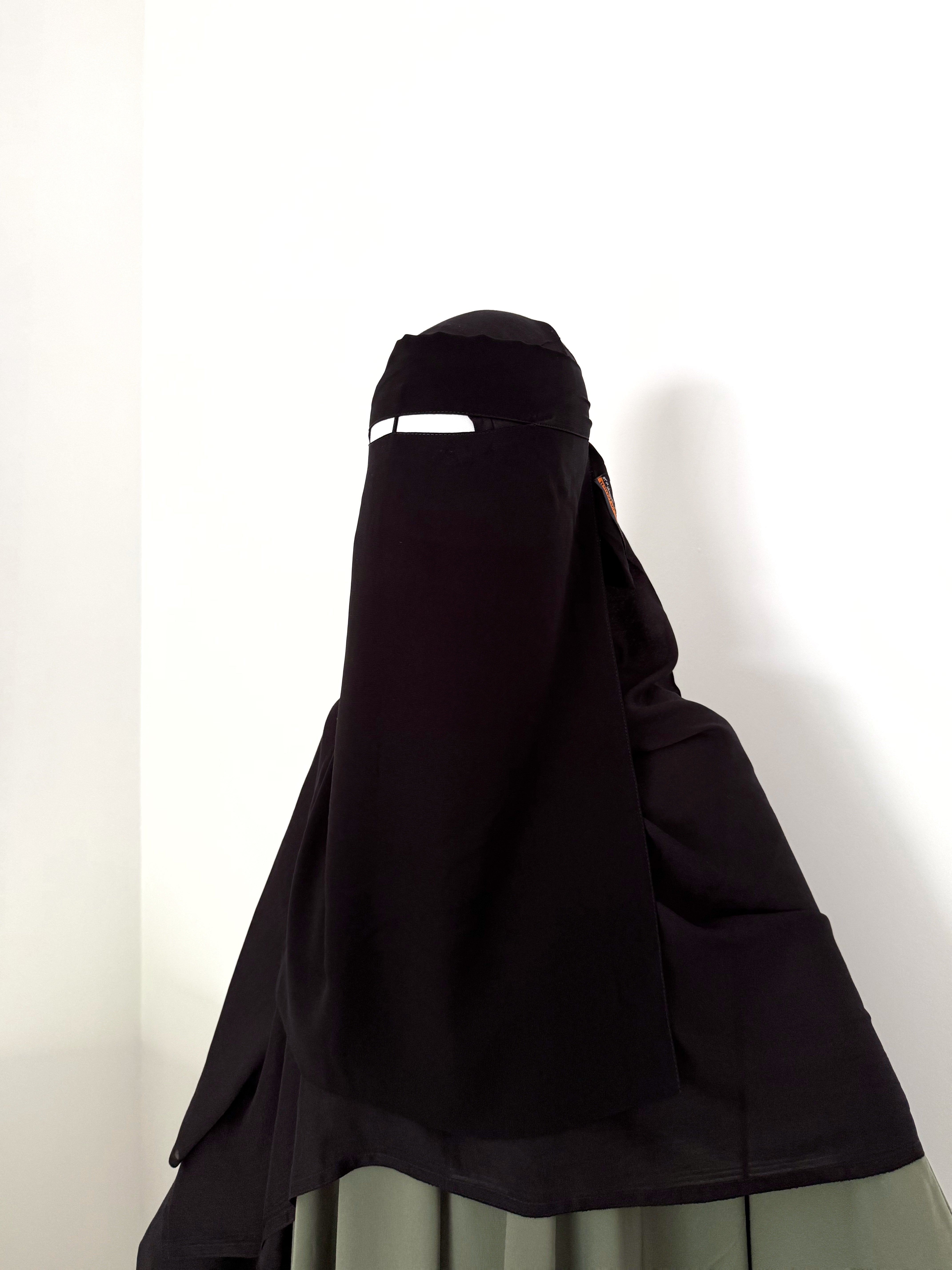 The niqab was very comfortable and the material was very breathable! I personally have large eyes and glasses and was still able to wear it with minimal discomfort around the eyes 🤍