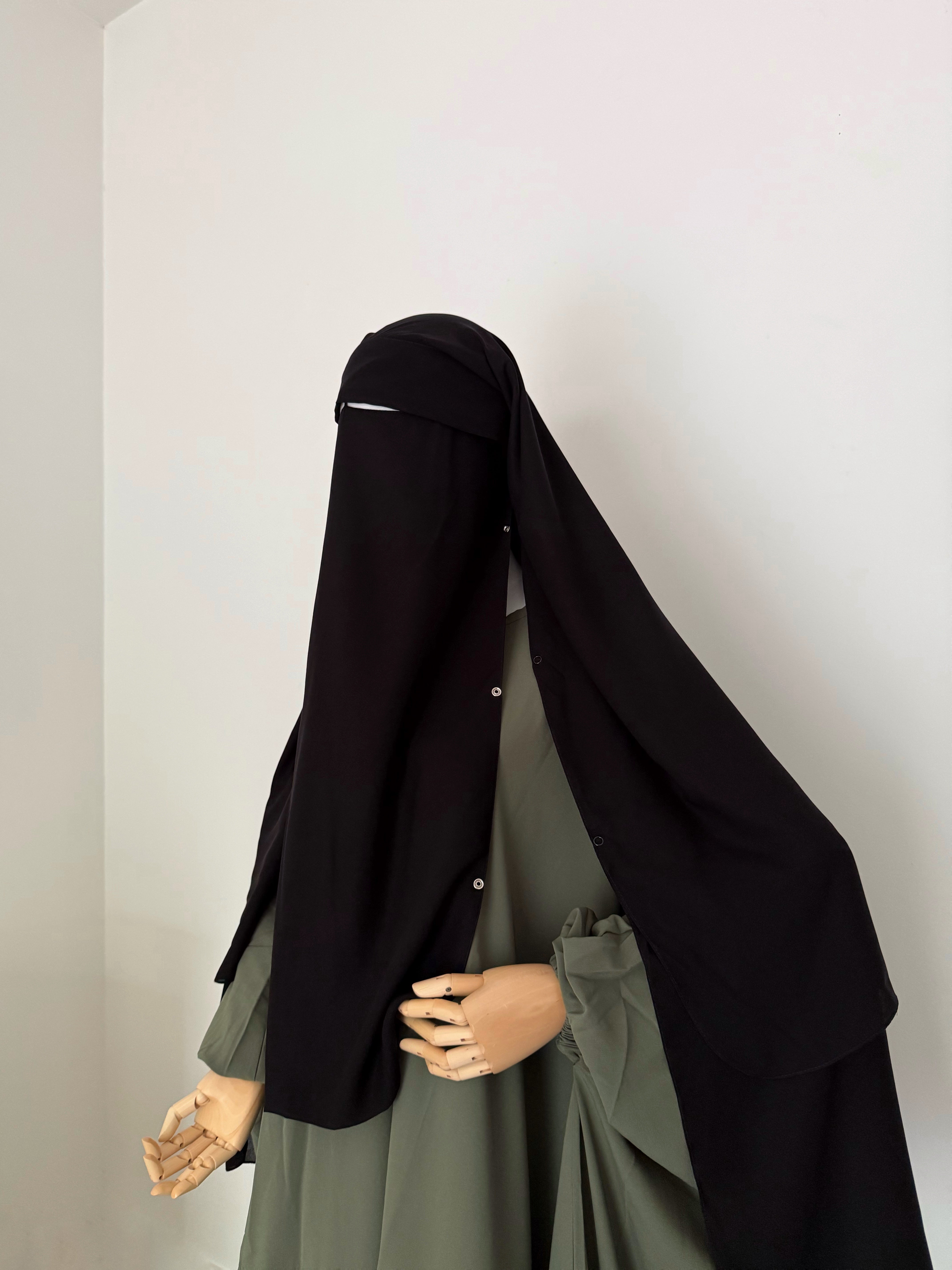 MY NEW FAVORITE NIQAB i love the length, I love the flap, I love the buttons and the triple layers is all just perfect. super comfortable, and you don’t need a hijab underneath to cover your neck