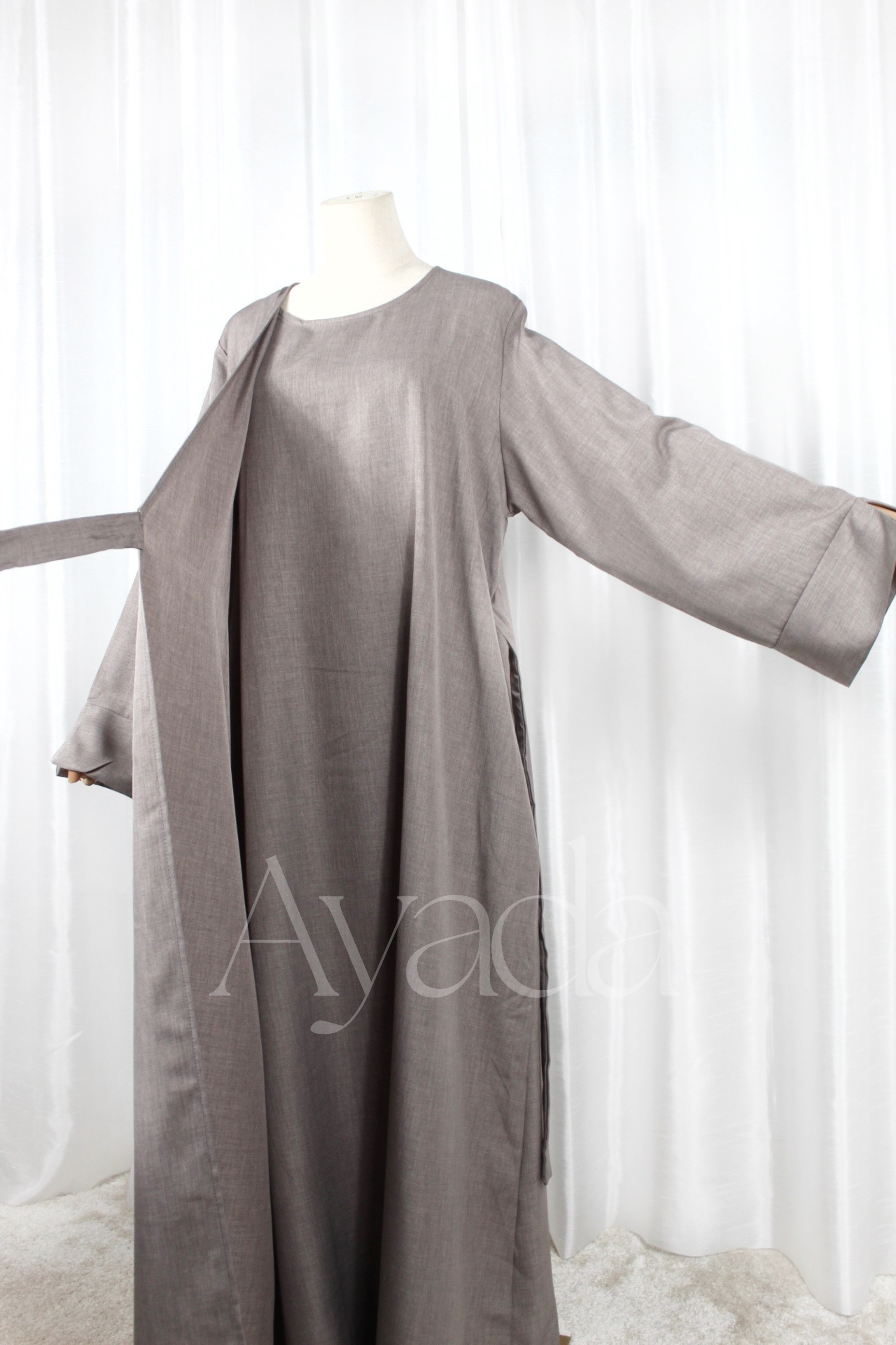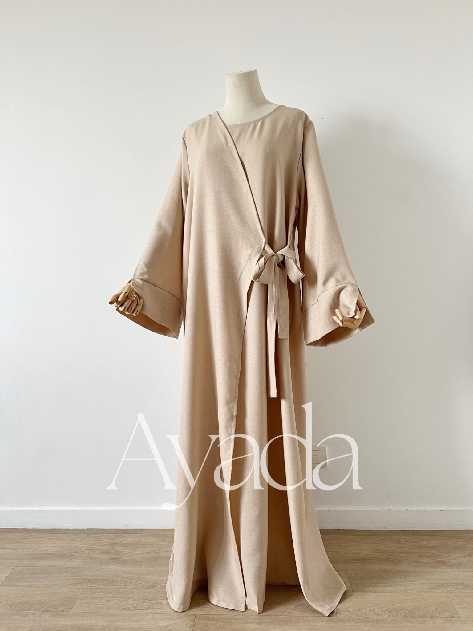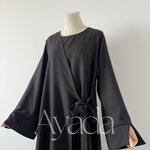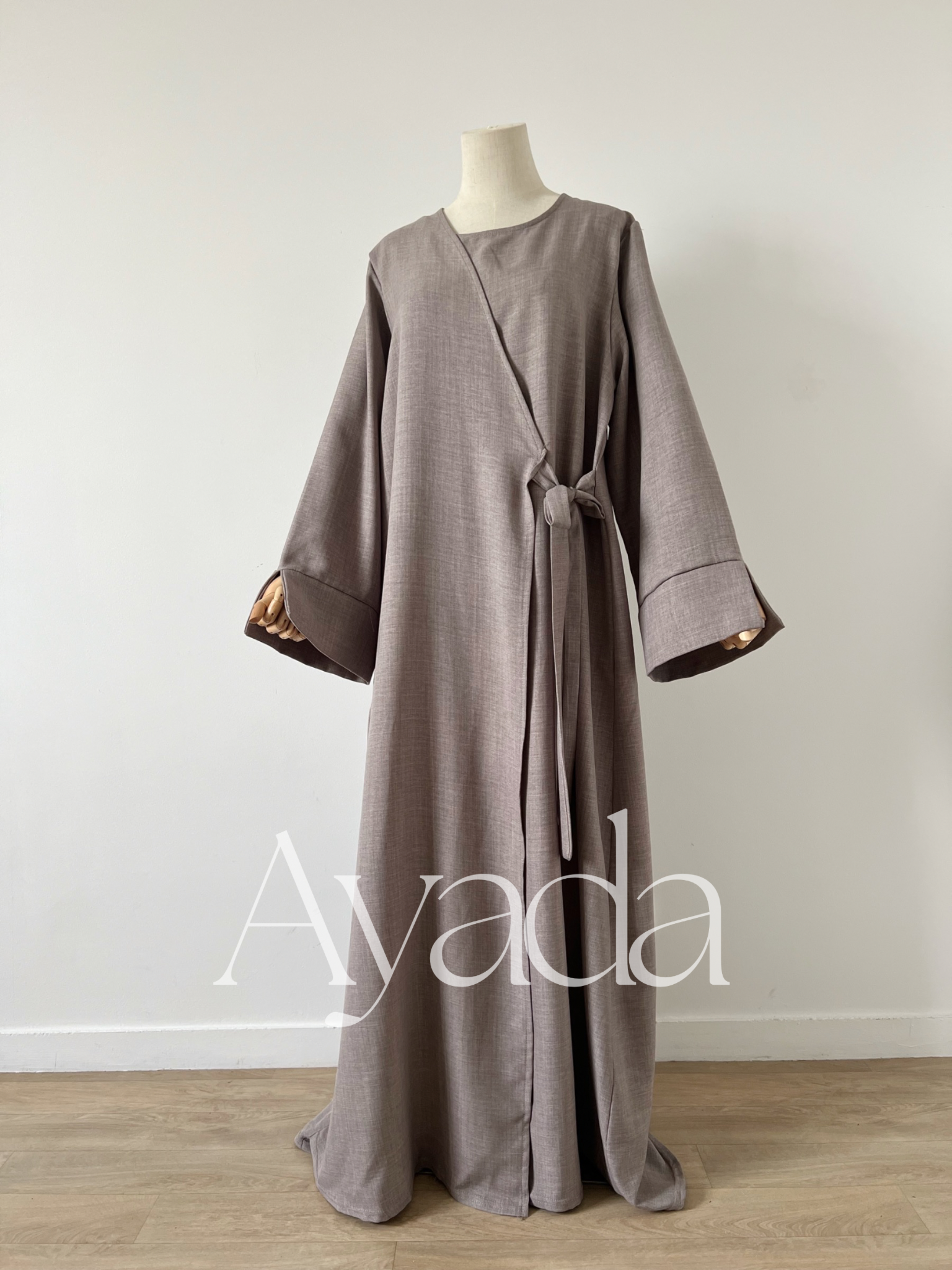 Es wird Sie bei Ihren Anlässen genauso begleiten wie im Alltag! Es vereint Bescheidenheit und Eleganz, getreu unserem Slogan! Mehrere Namen für dieses erhabene Stück, Abaya Wickelherz, Abaya zum Binden, Abaya Wickel