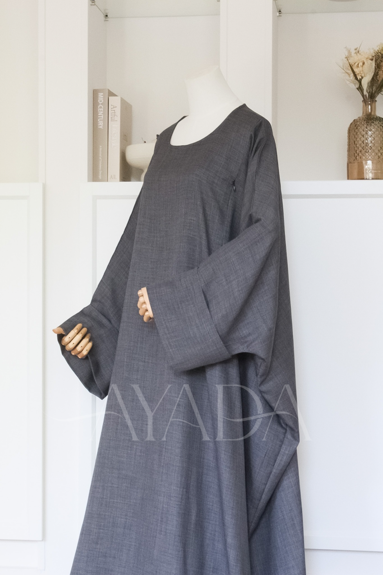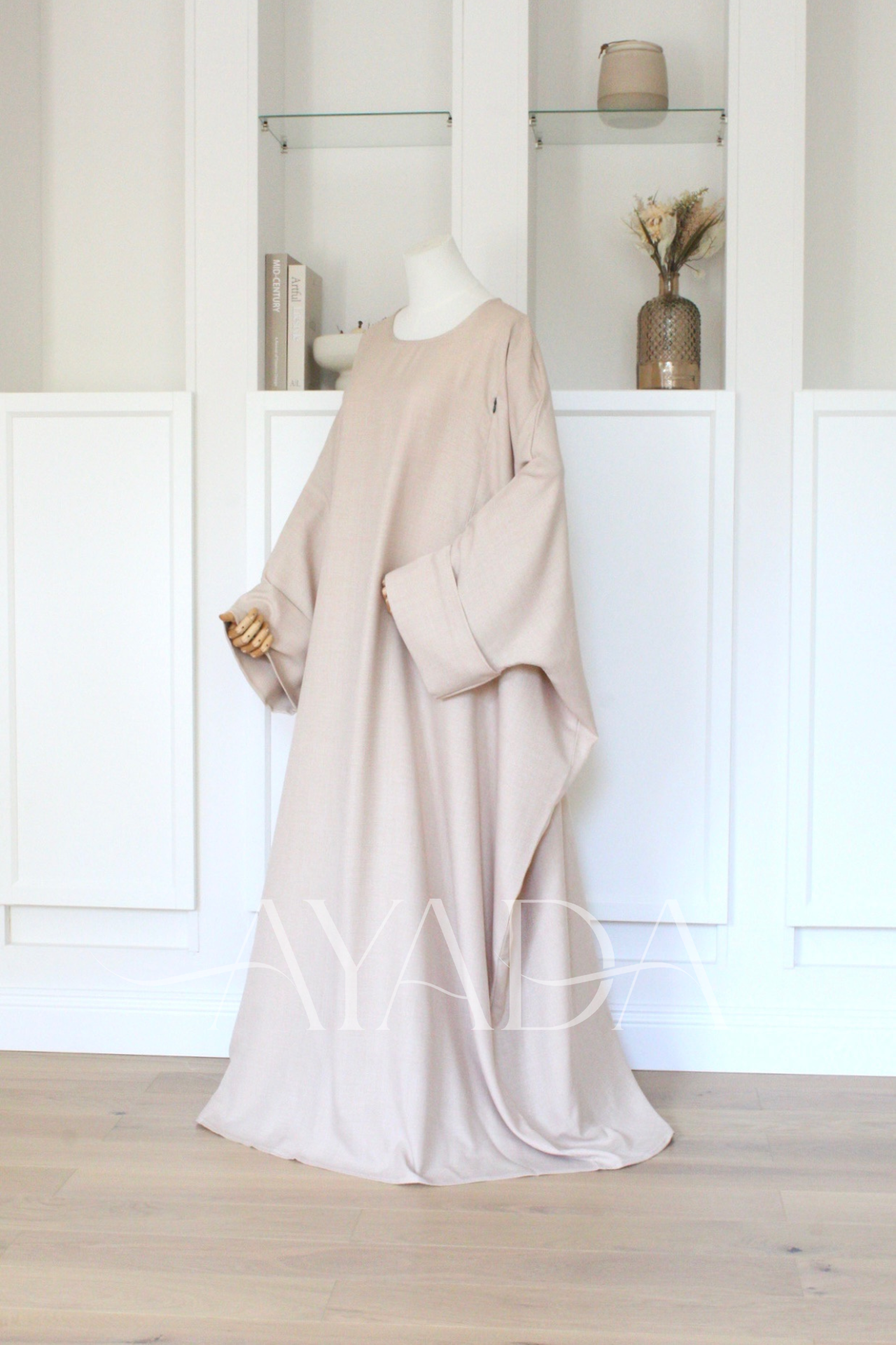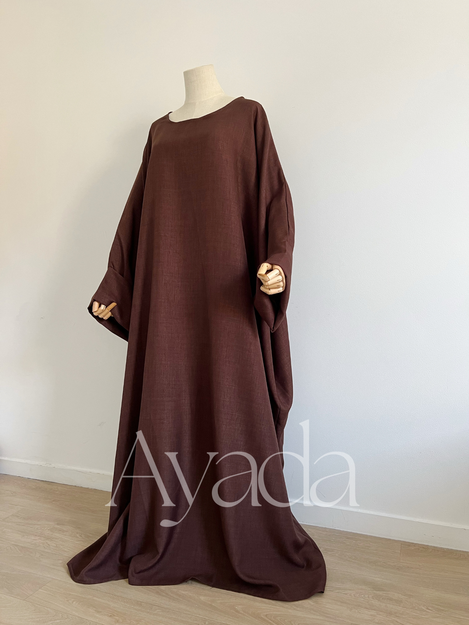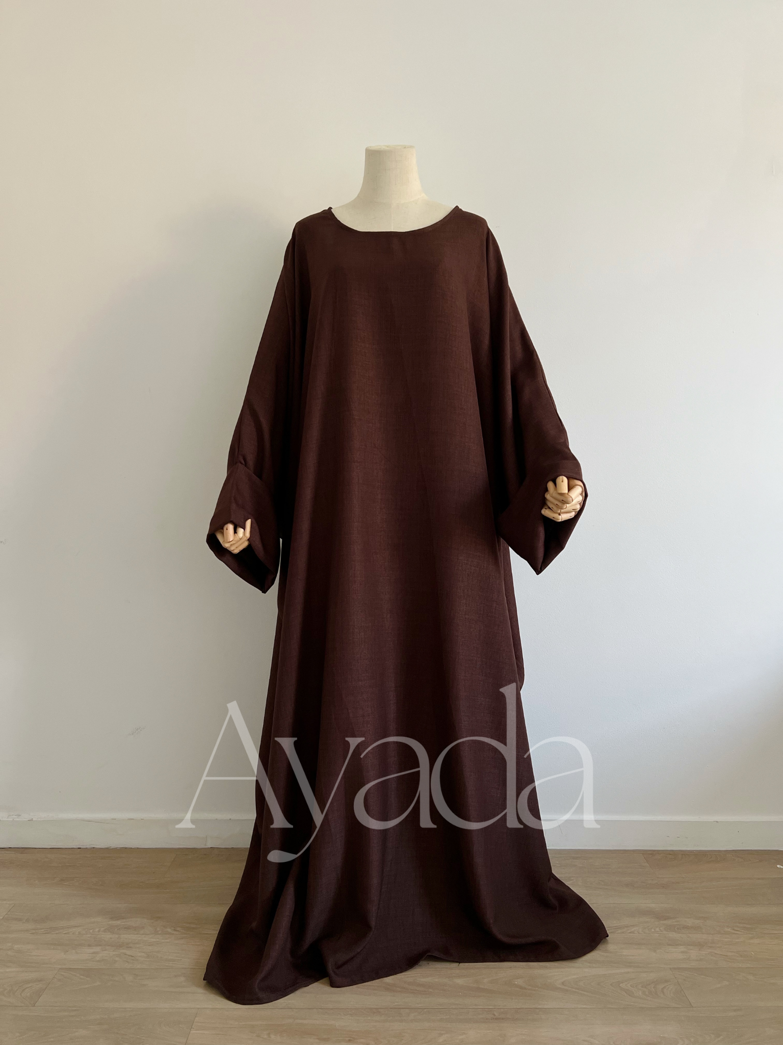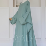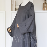 Eine Abaya mit Leineneffekt und hochgekrempelten Ärmeln, die Ihrem Outfit eine hohe Eleganz verleiht.