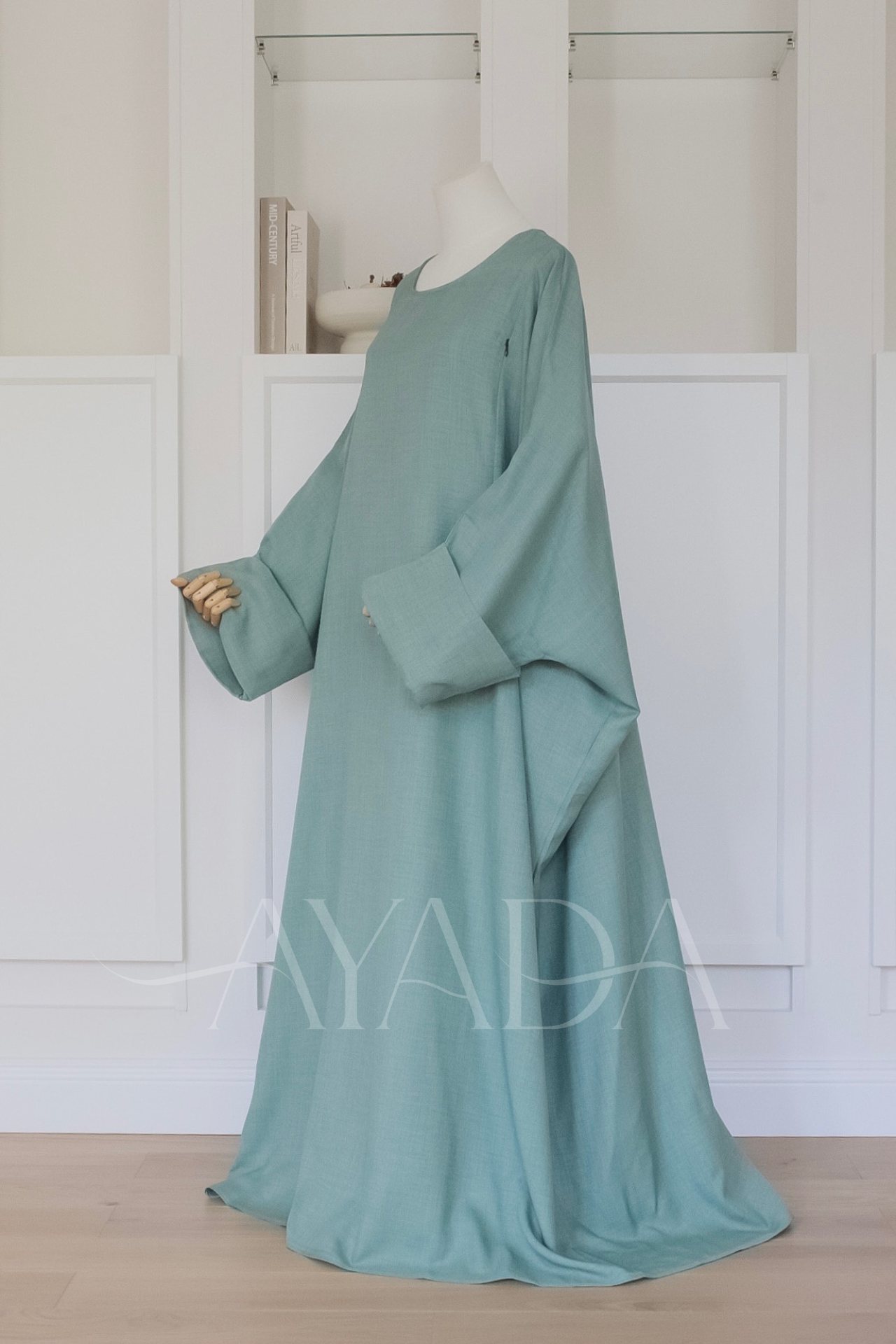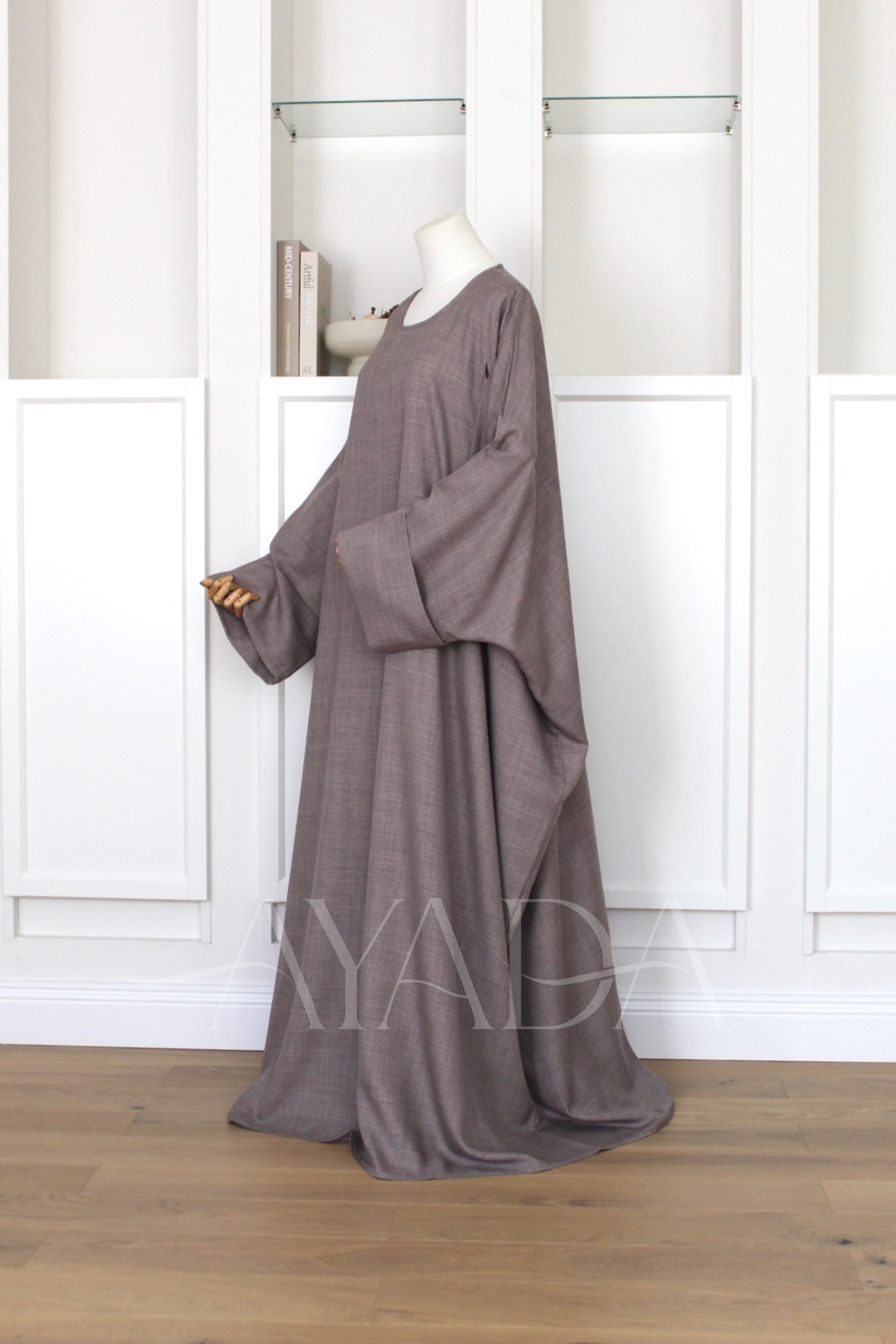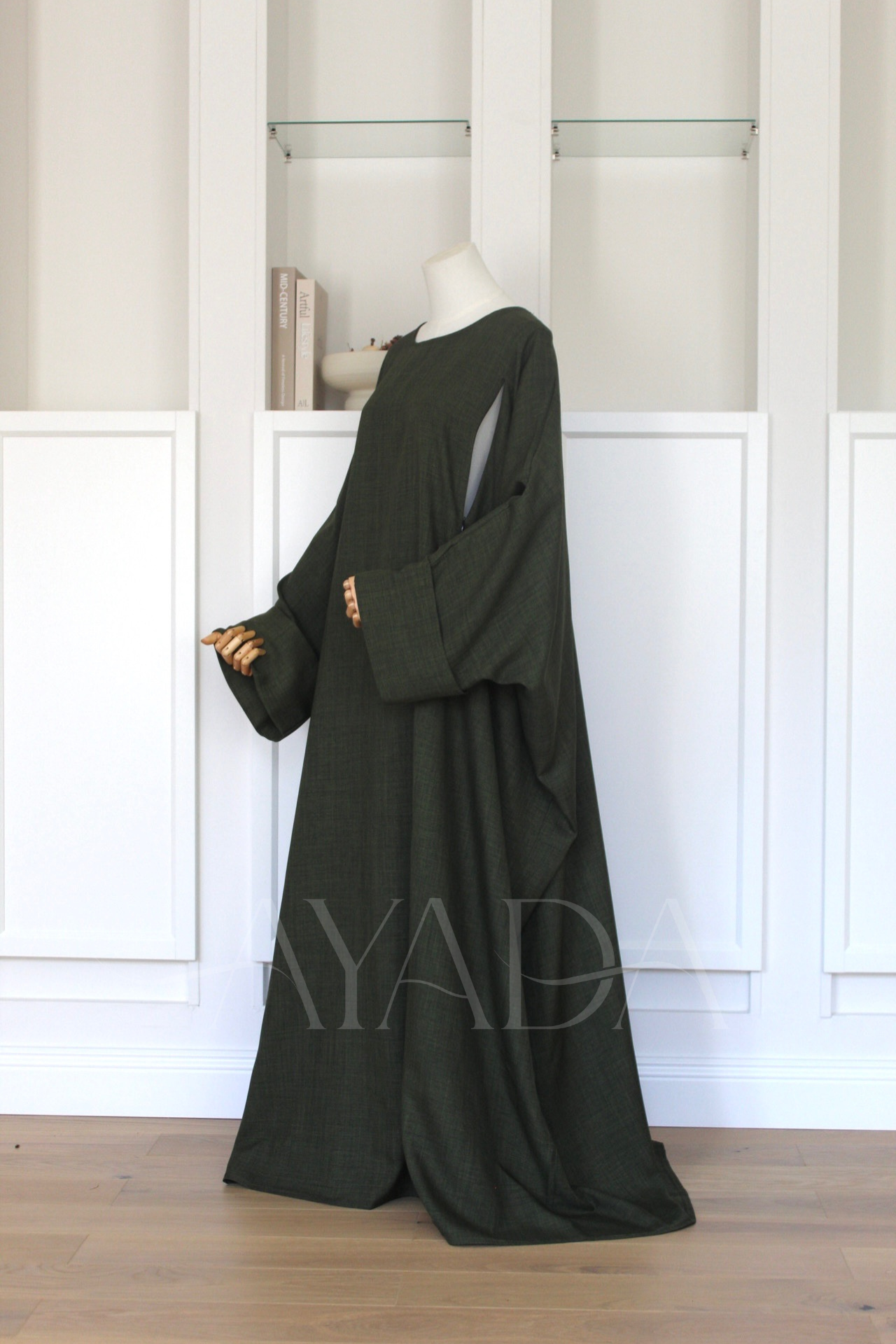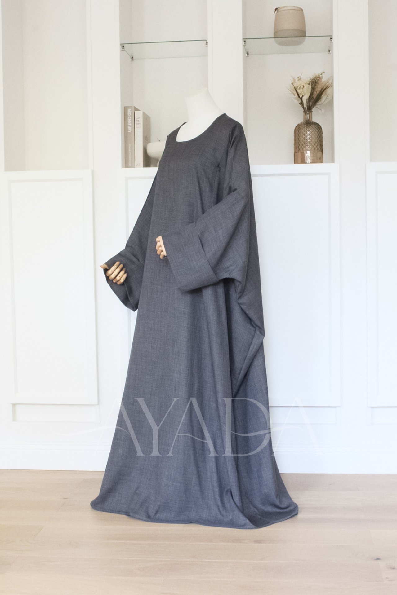 Eine Abaya mit Leineneffekt und hochgekrempelten Ärmeln, die Ihrem Outfit eine hohe Eleganz verleiht.