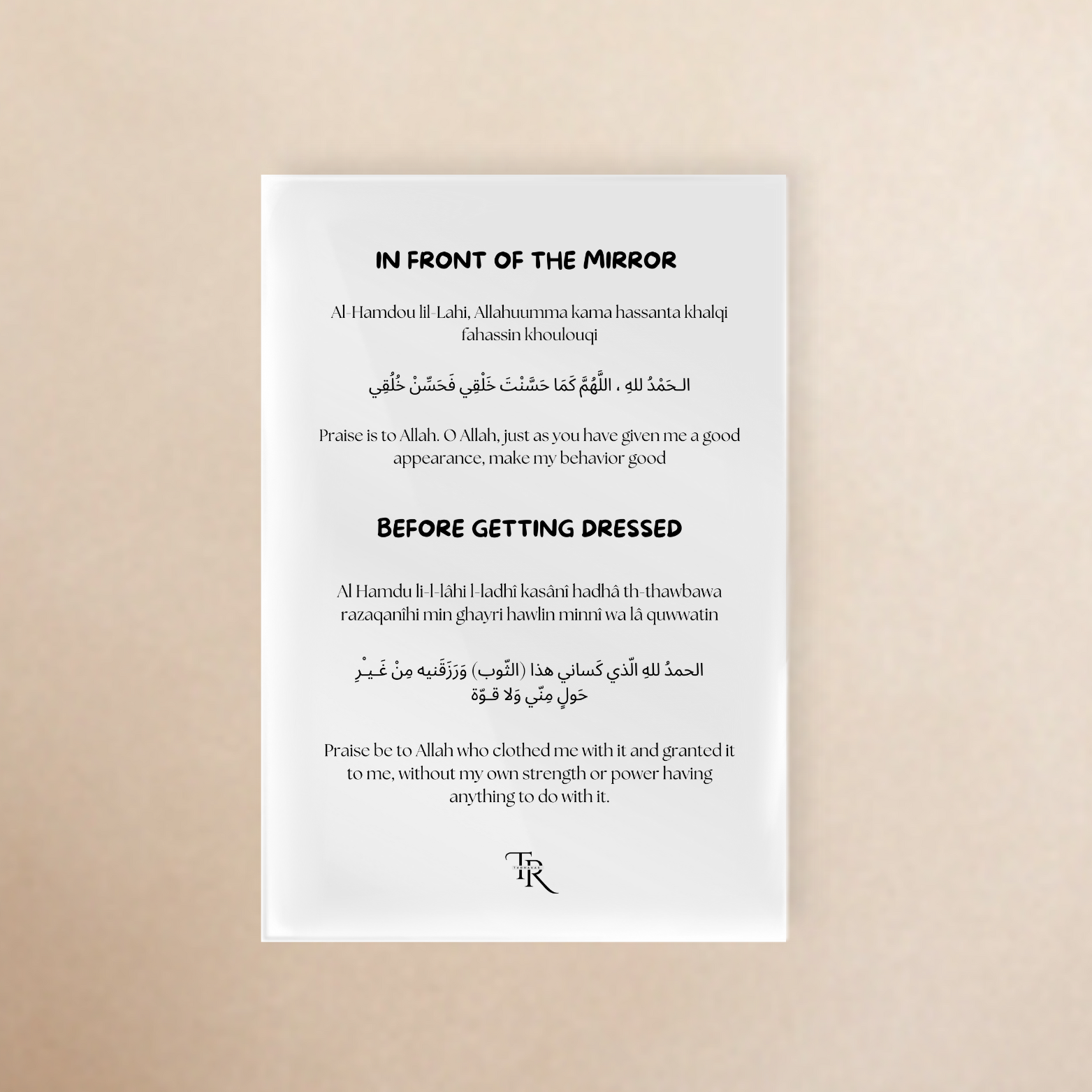 Bringen Sie eine spirituelle Erinnerung an einen oft übersehenen Ort mit diesem Brett mit den Anrufungen, die vor und nach dem Toilettengang rezitiert werden sollen. Dieses praktische und dekorative Stück wurde entwickelt, um Sie im Alltag zu begleiten. Es eignet sich perfekt, um Gewohnheiten aufzubauen, täglichen Schutz zu bieten und Ihre Verbindung zu Allah zu stärken.