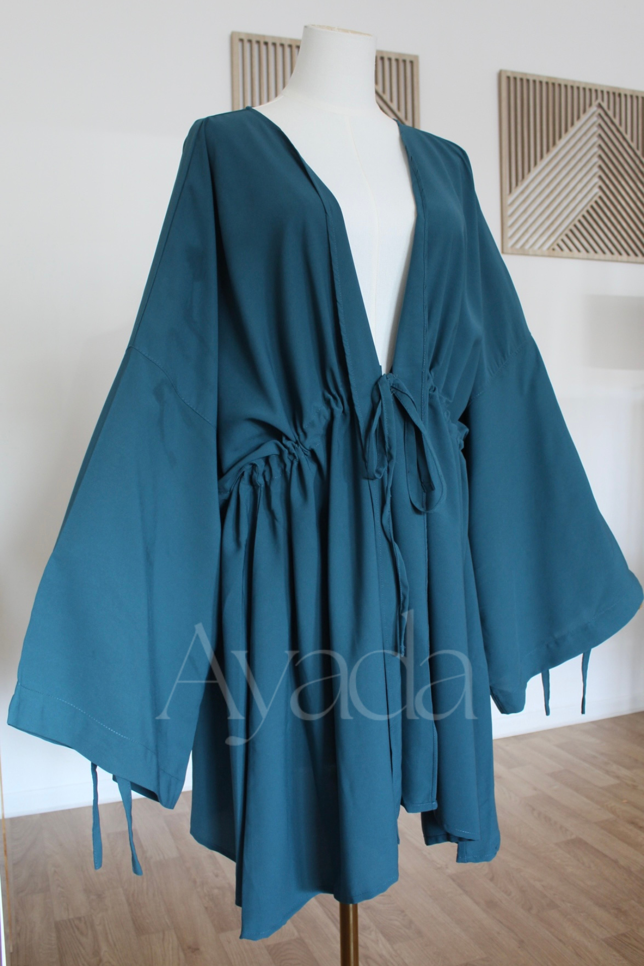 Petit kimono très qualitatif par contre selon moi il convient plutôt aux grandes de tailles car étant petite, les manches sont très grandes même en serrant à fond. J'aurais préféré aussi des boutons à pressions au niveau des manches sinon rien.