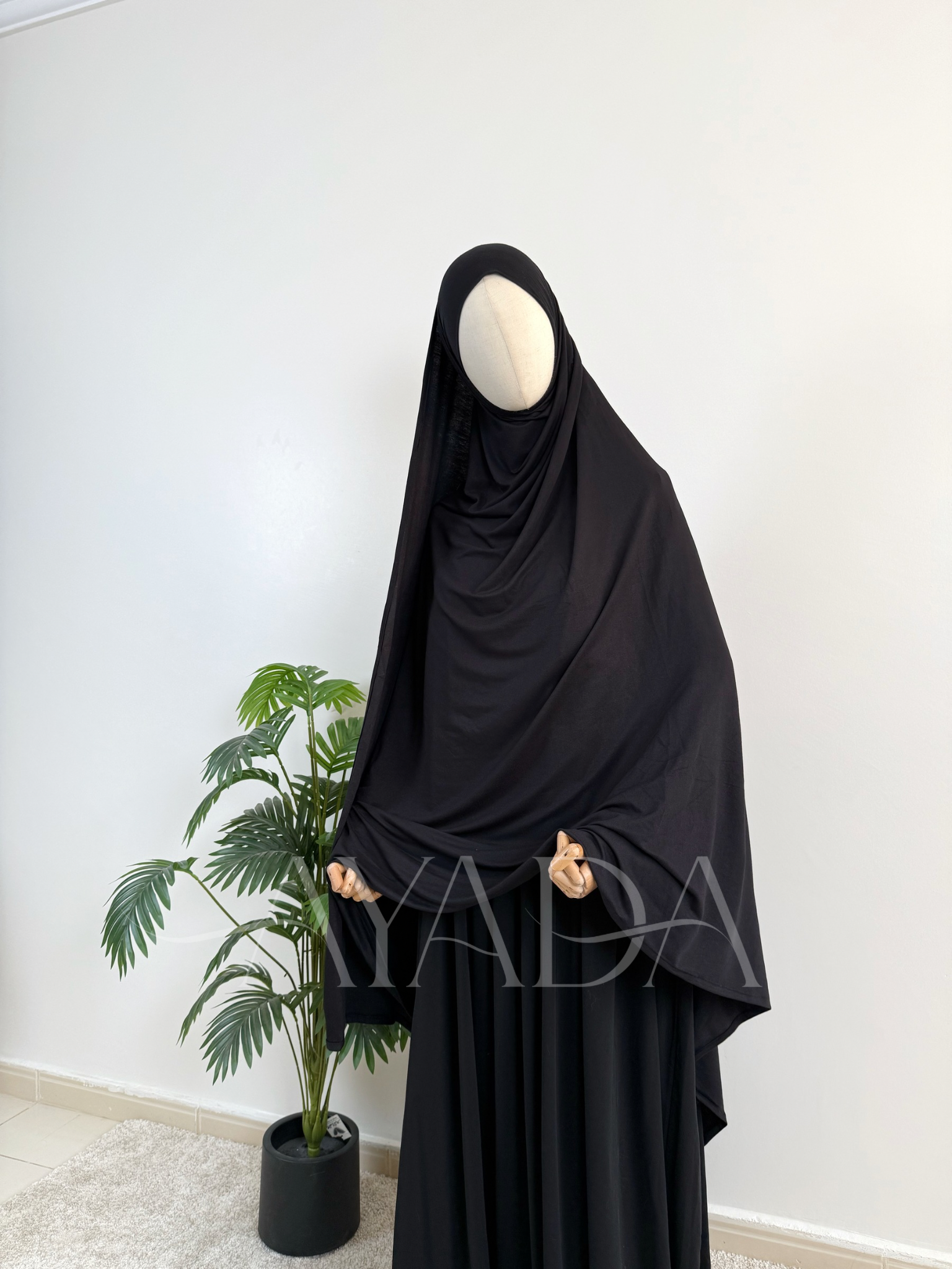 Sie haben danach gefragt, wir haben sie hergestellt. Wir haben für Sie unsere eigene Marke Jersey Tie Hijabs in einer Größe von 220 x 110 cm für 2x mehr Bedeckung entwickelt!