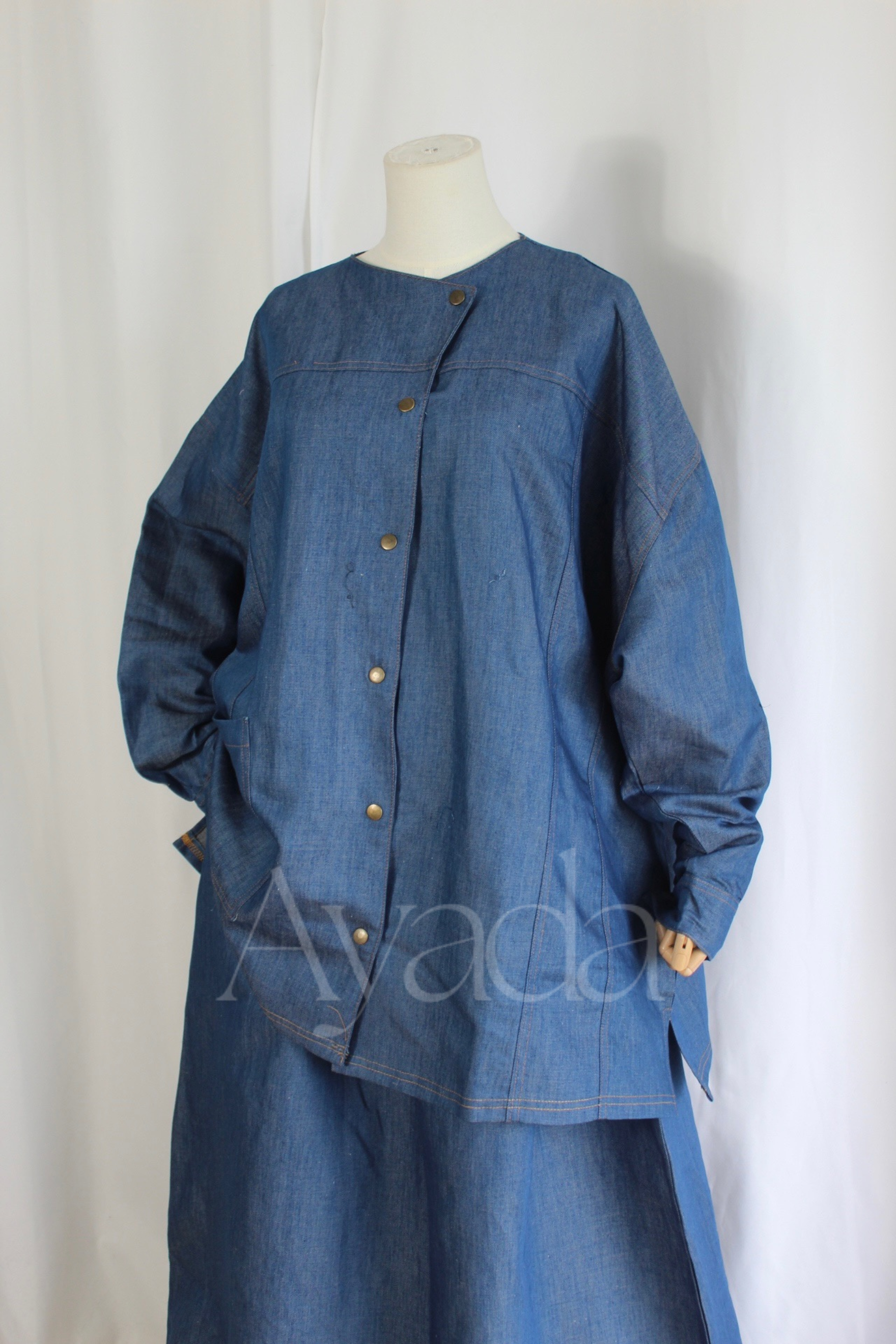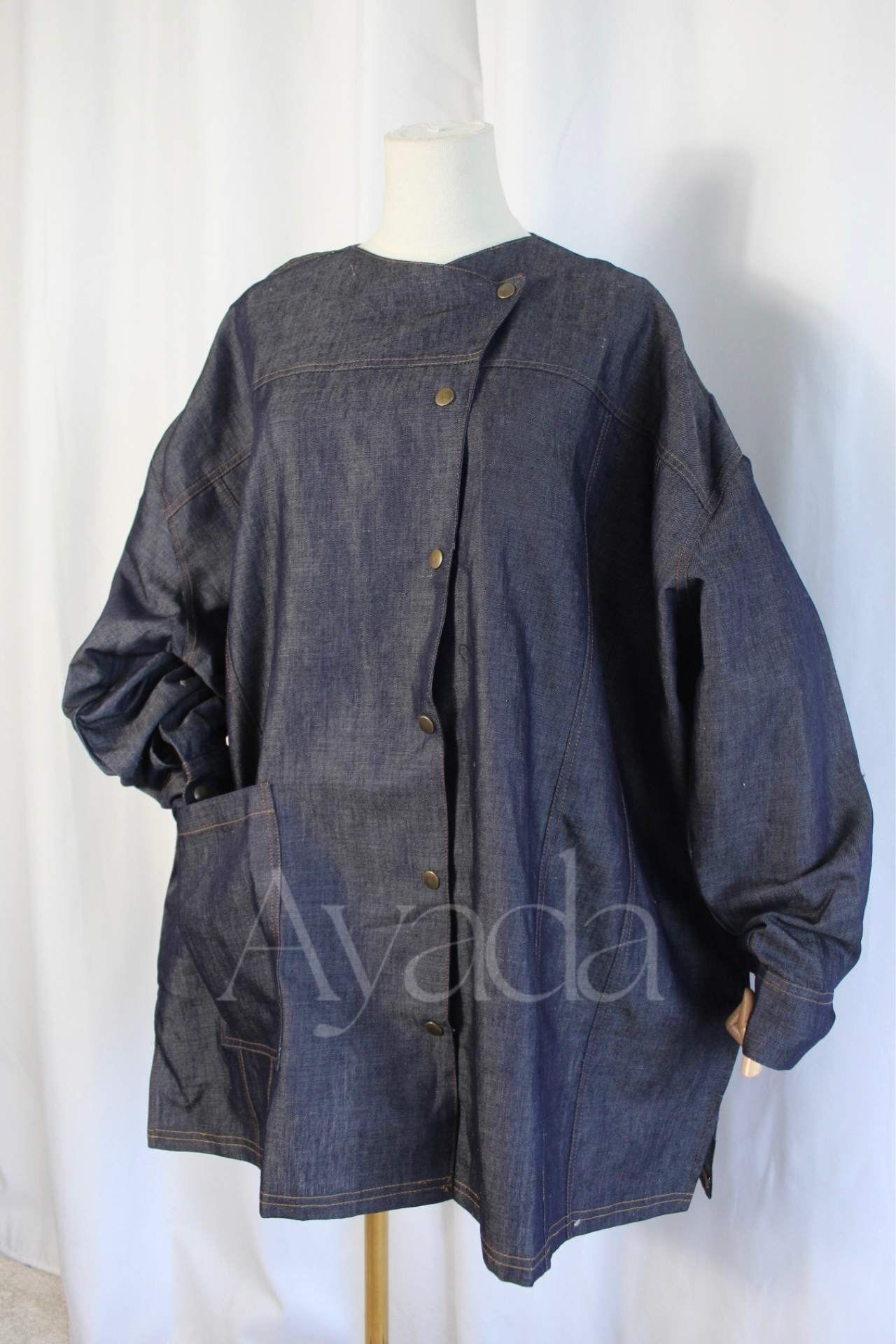 EMY Jeansjacke, ein Must-Have bei AYADA, im chinesischen Stil gefertigt, ganz in Schlichtheit
