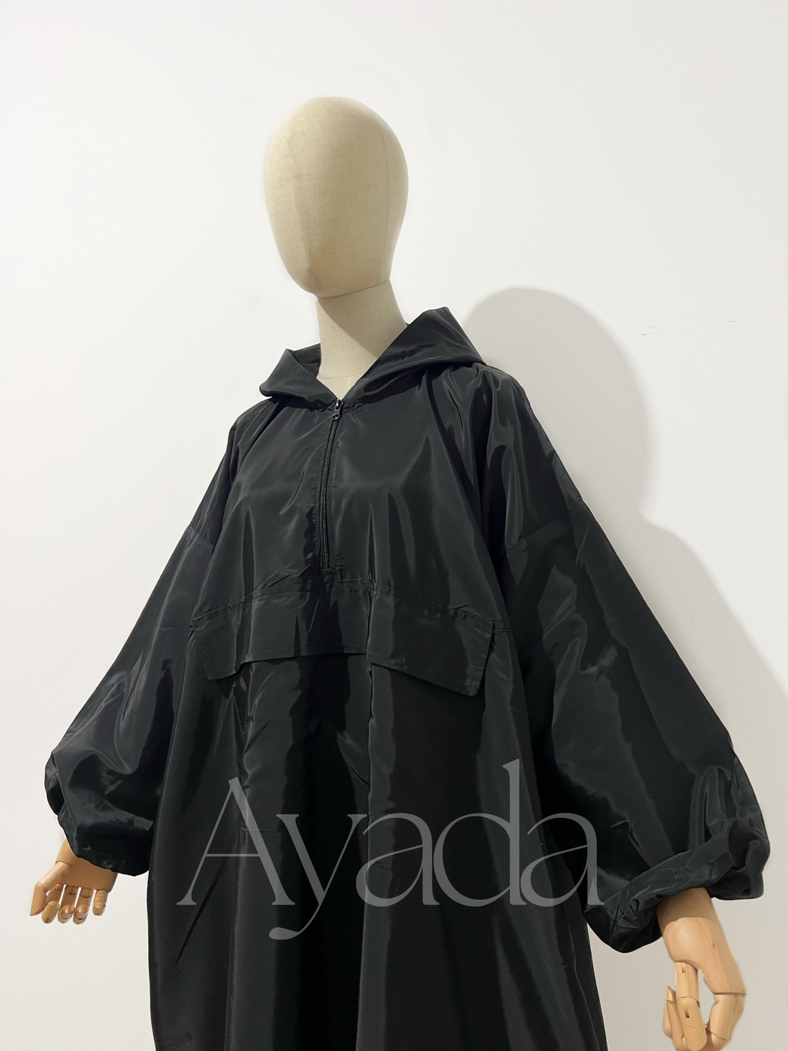 Hier ist unsere erste Kreation, der Kira Parka, ein Regenmantel aus Marokko. Wir haben ihn im Streetwear-Stil entworfen, mit einer großen Cargotasche, einem Reißverschluss, der auch zum Stillen verwendet werden kann, Seitentaschen für mehr Funktionalität sowie kleinen Schlitzen an den Seiten unten. Sein übergroßer und muskulöser Schnitt wird Sie verführen.
