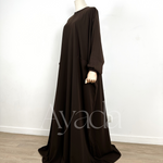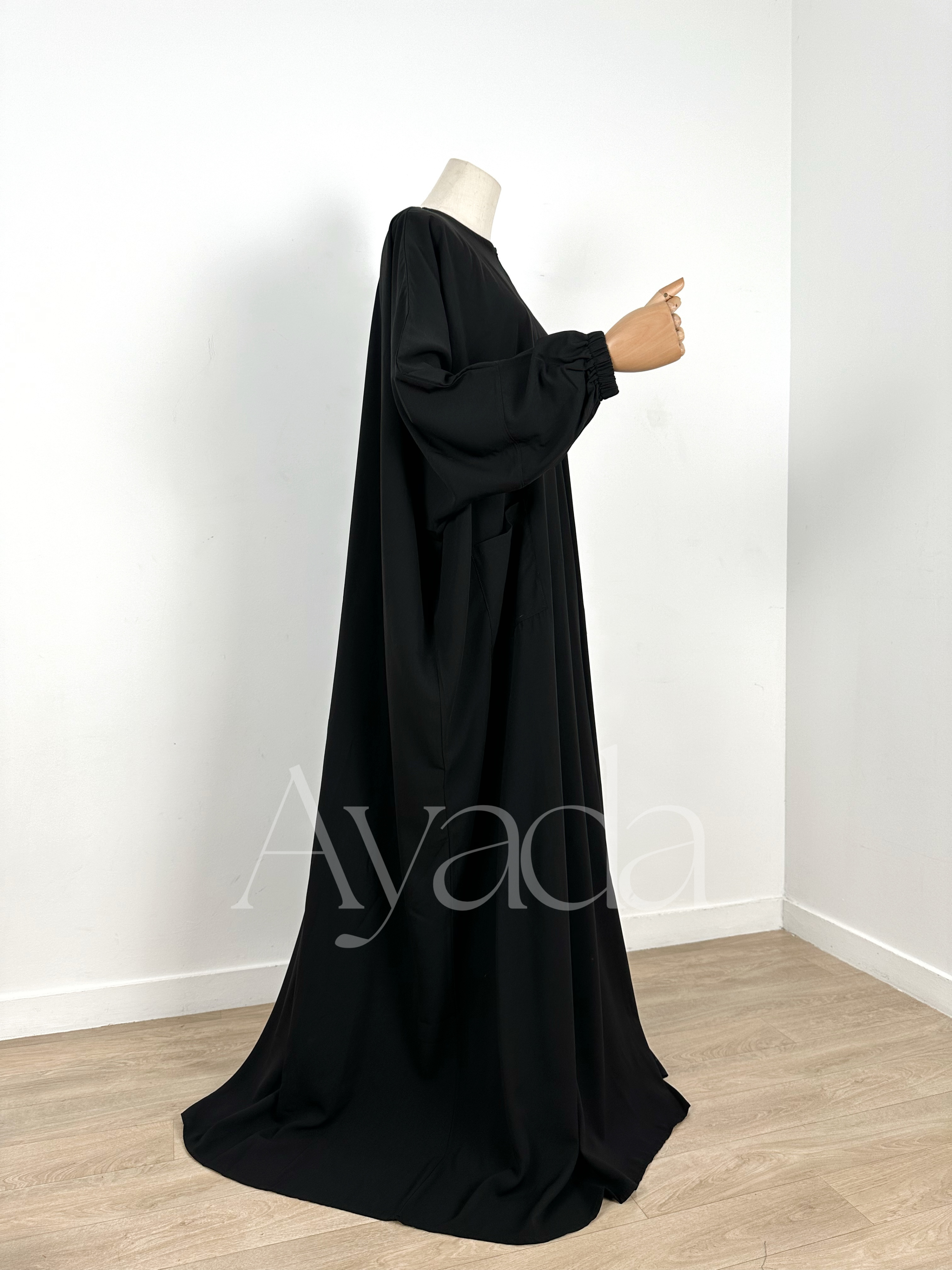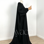 We have the honor to present to you our very first creation, the Abaya Haya, a simplistic, modern, classy, ​​mastoura, elegant abaya, in a half-Saudi cut, which will become your favorite abaya