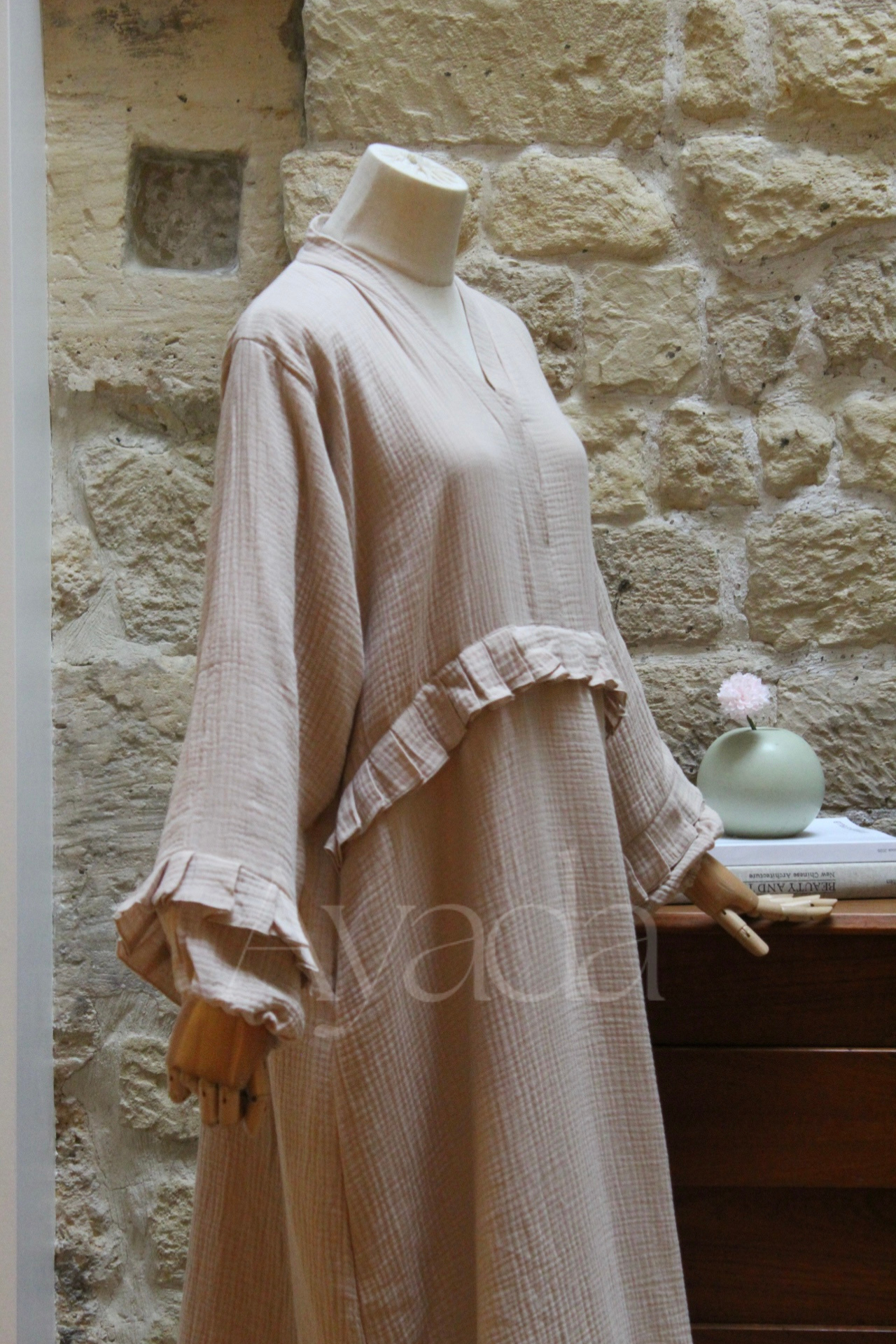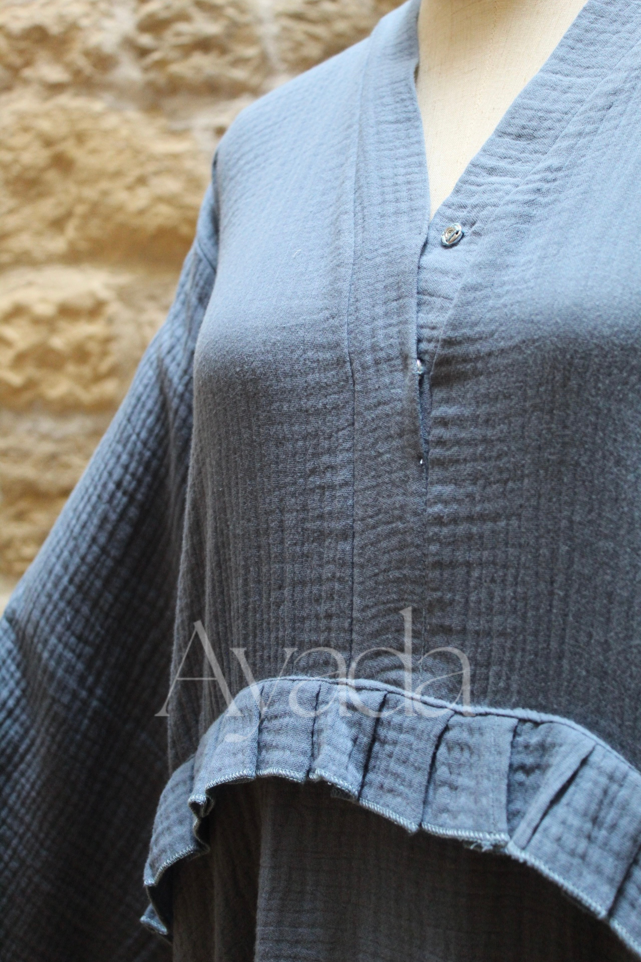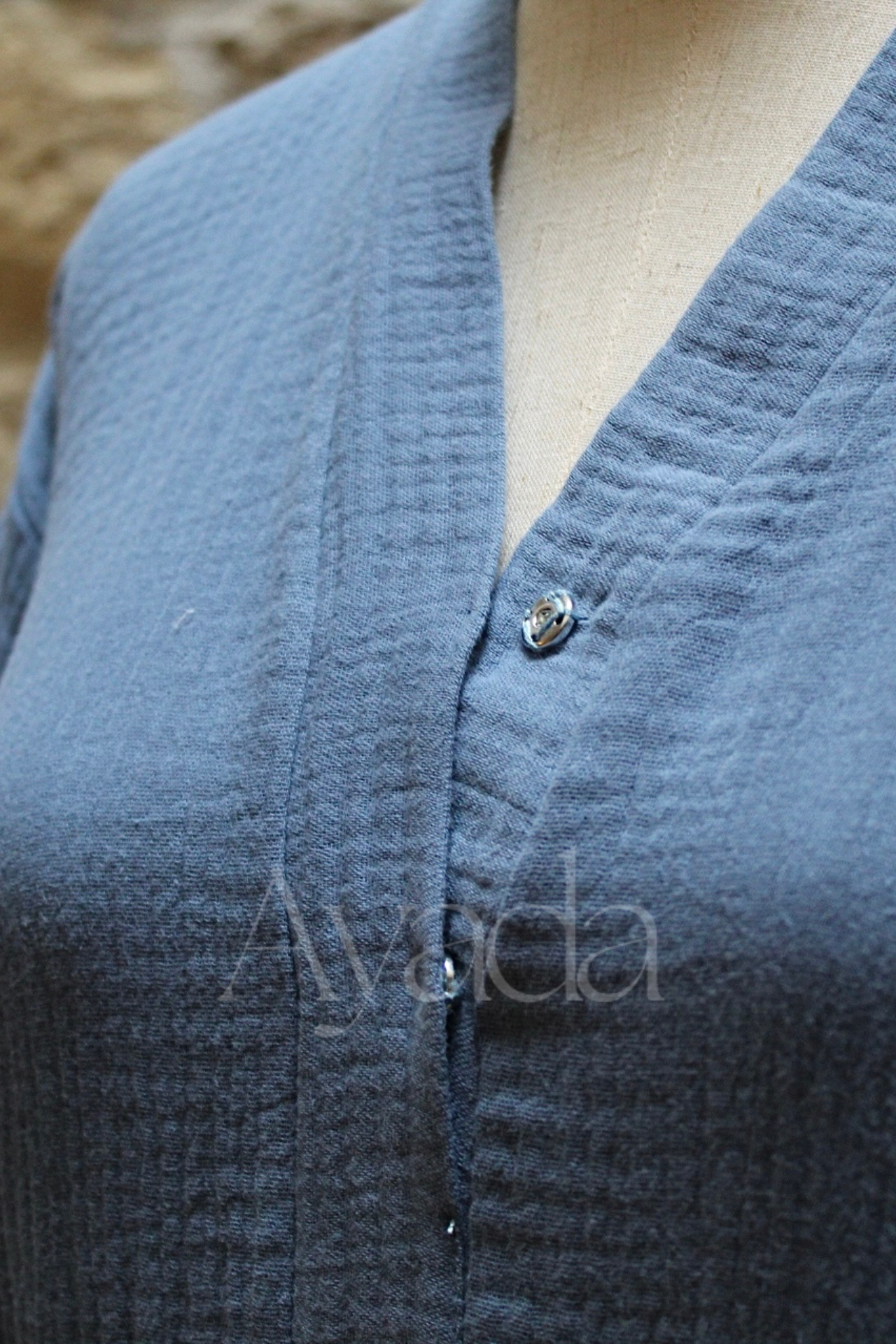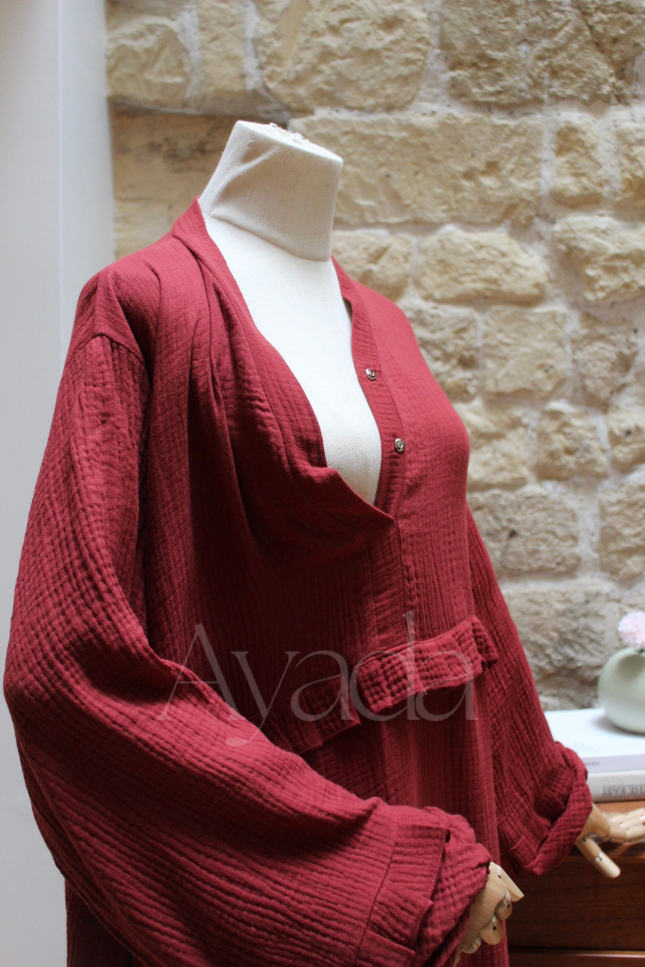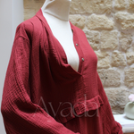 We've selected a quality of gauze that retains its slightly wrinkled appearance (no need for ultra-strict ironing) and remains soft wash after wash. For the lightest colors, we've added a discreet muslin lining to protect your privacy without weighing down the garment. The result: comfort, casual elegance, and a premium finish.