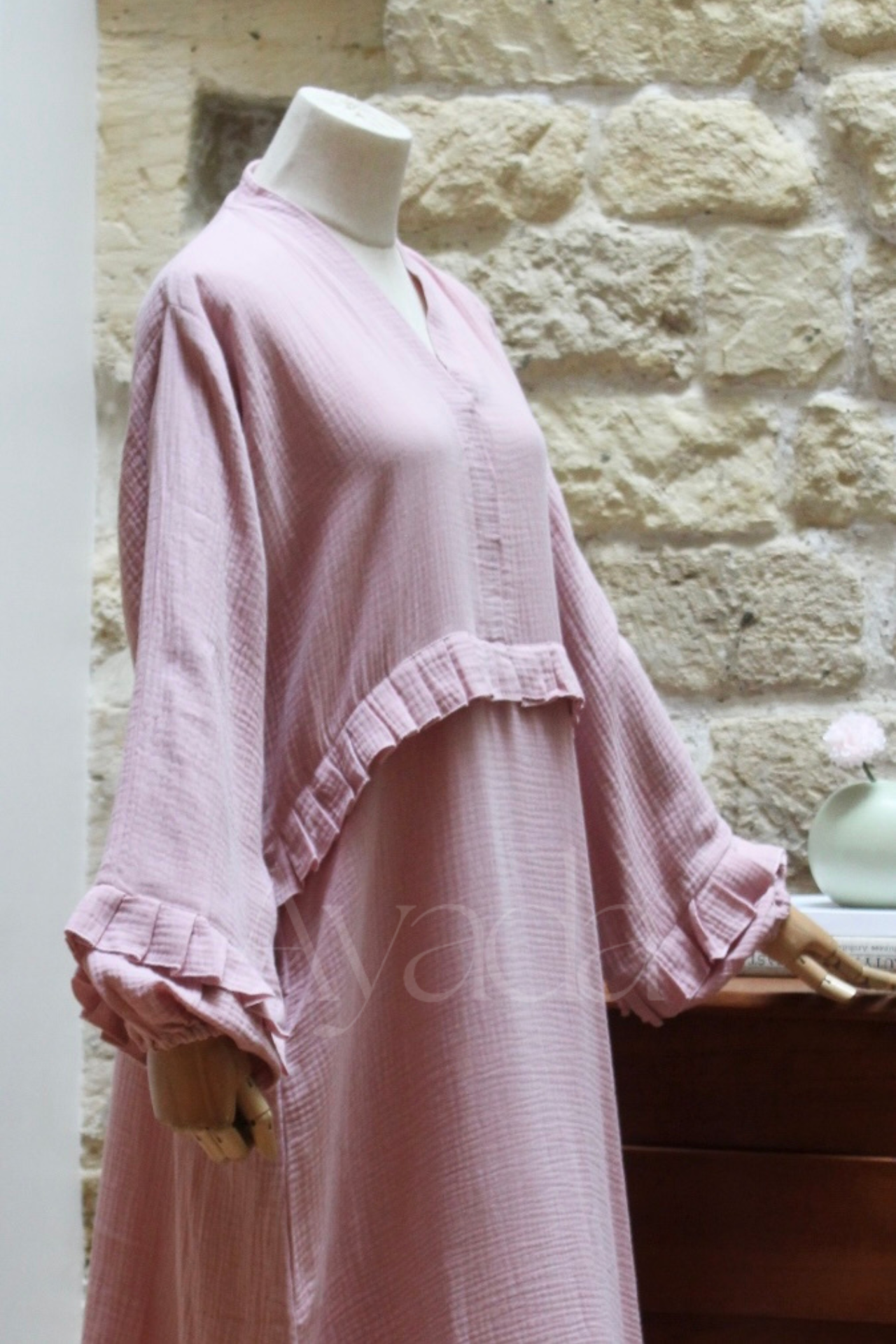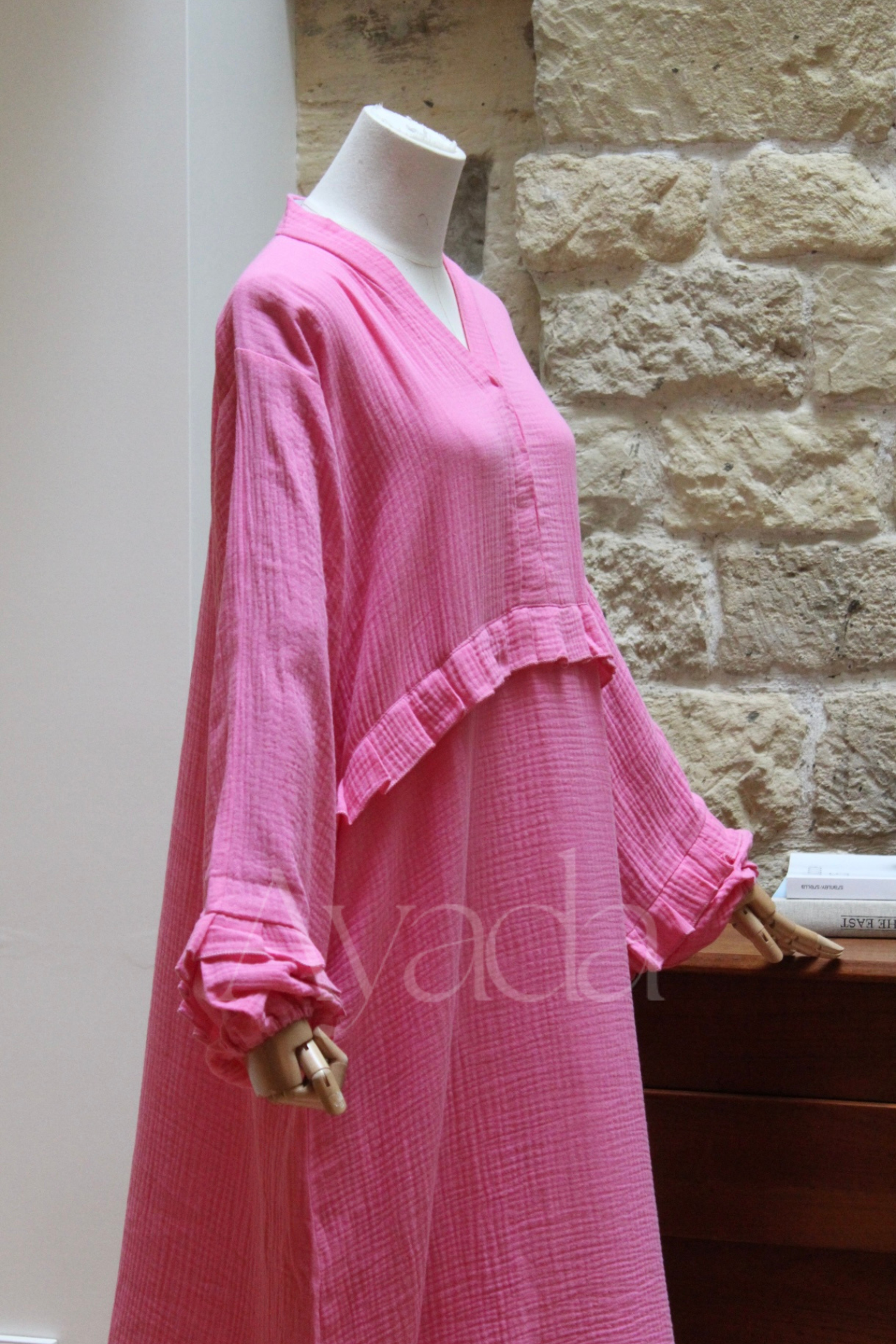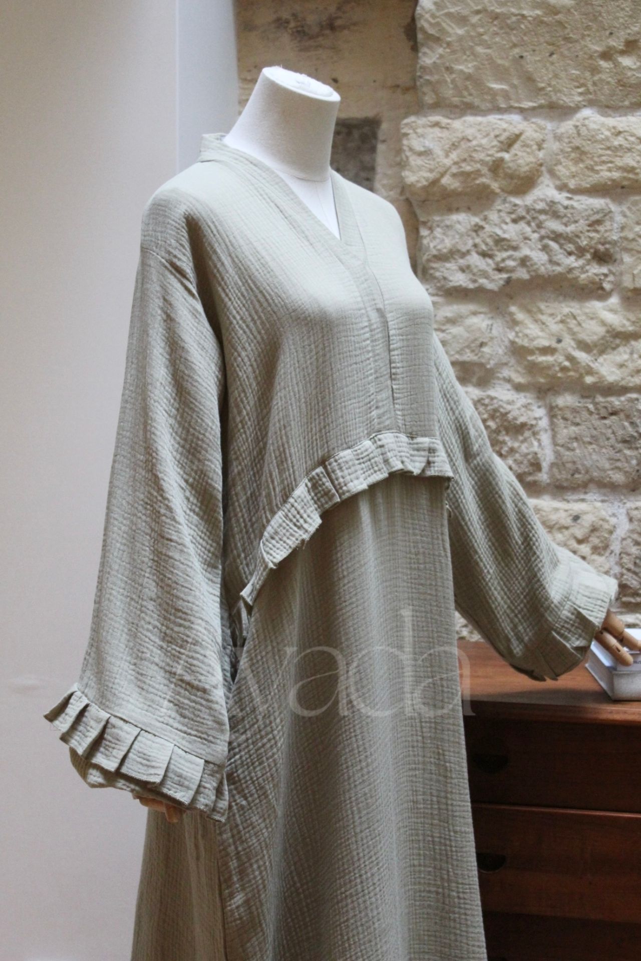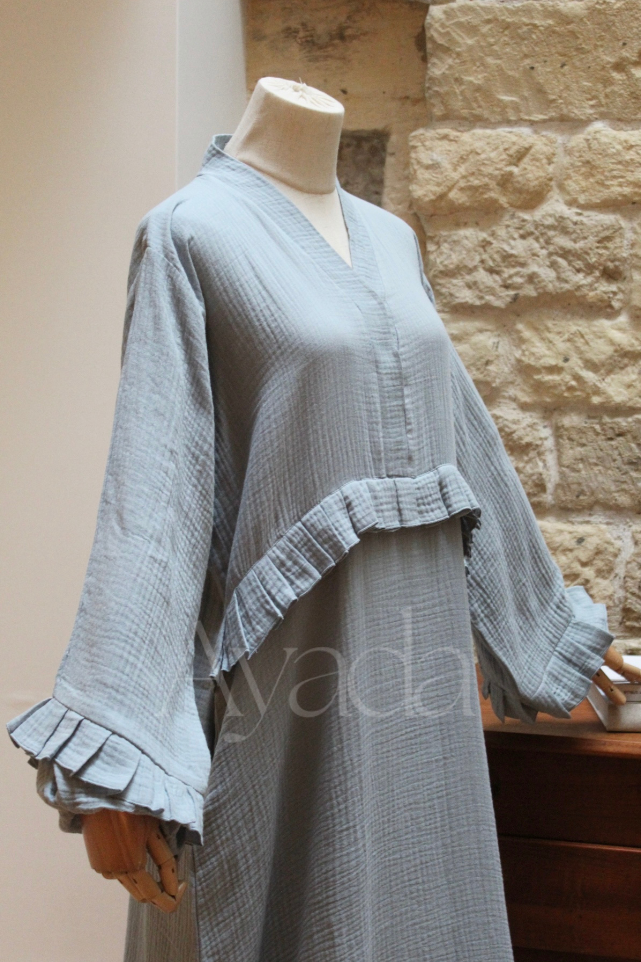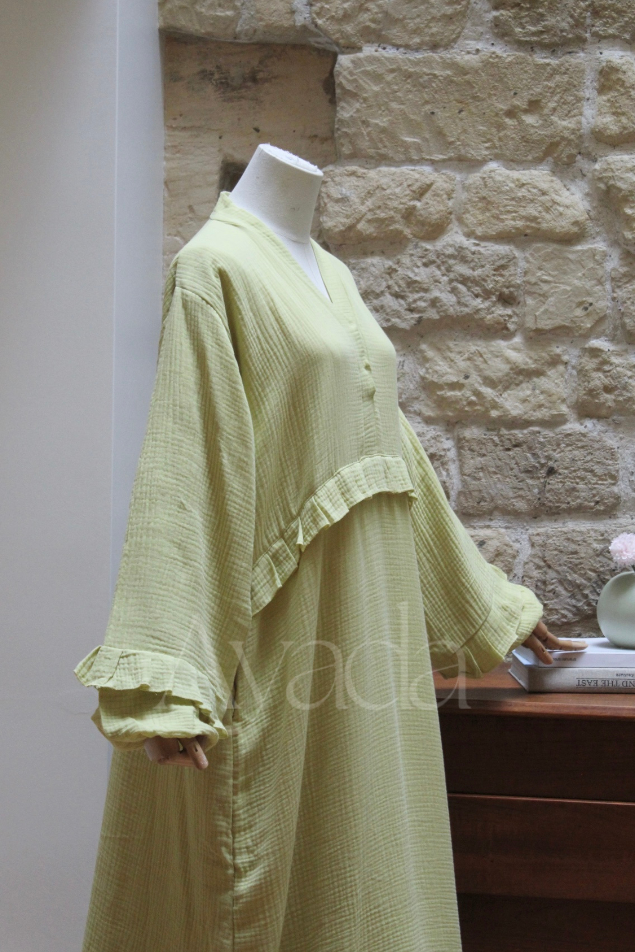 We've selected a quality of gauze that retains its slightly wrinkled appearance (no need for ultra-strict ironing) and remains soft wash after wash. For the lightest colors, we've added a discreet muslin lining to protect your privacy without weighing down the garment. The result: comfort, casual elegance, and a premium finish.