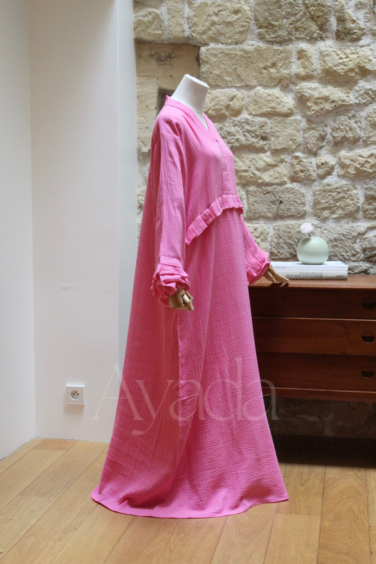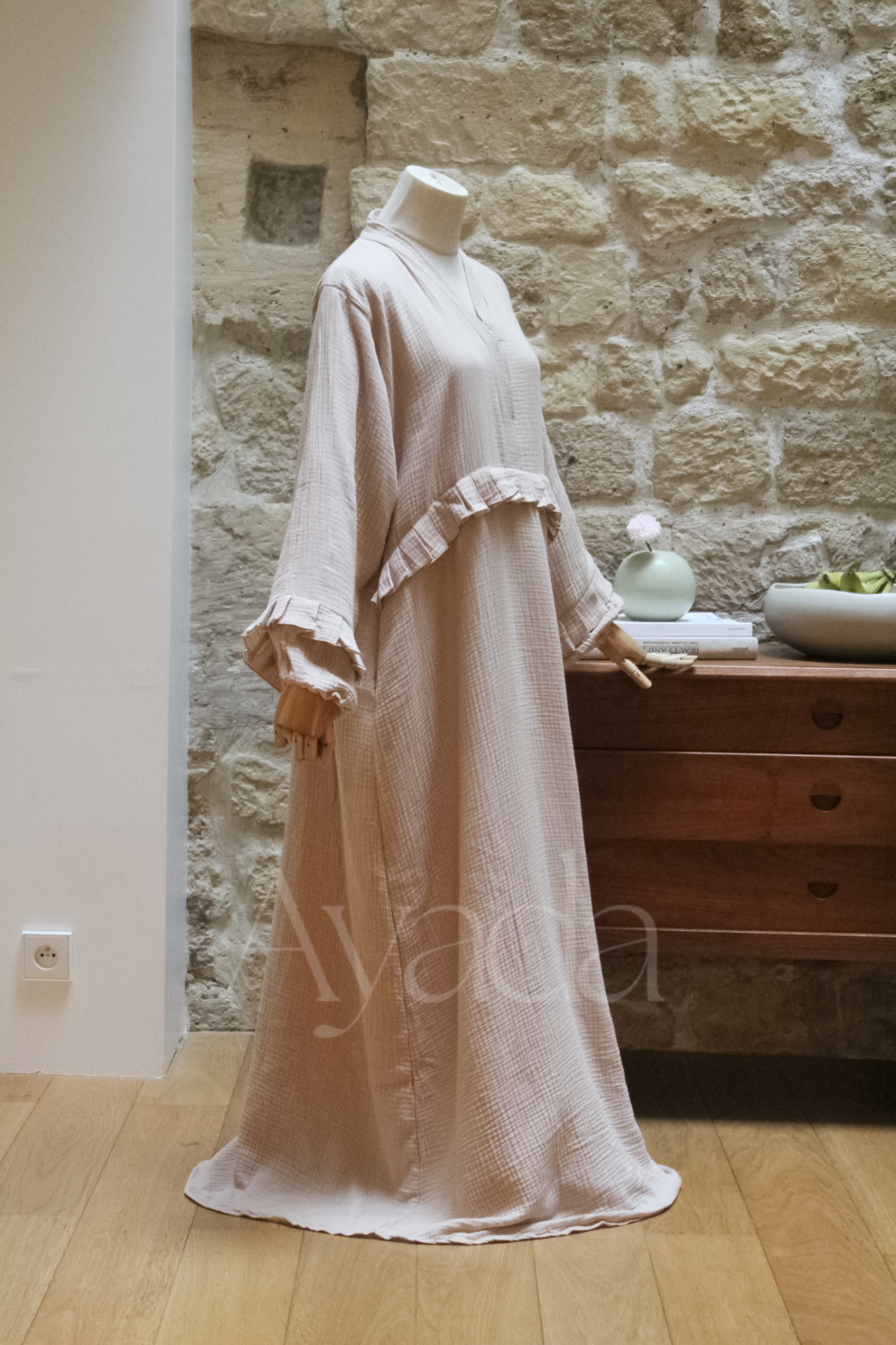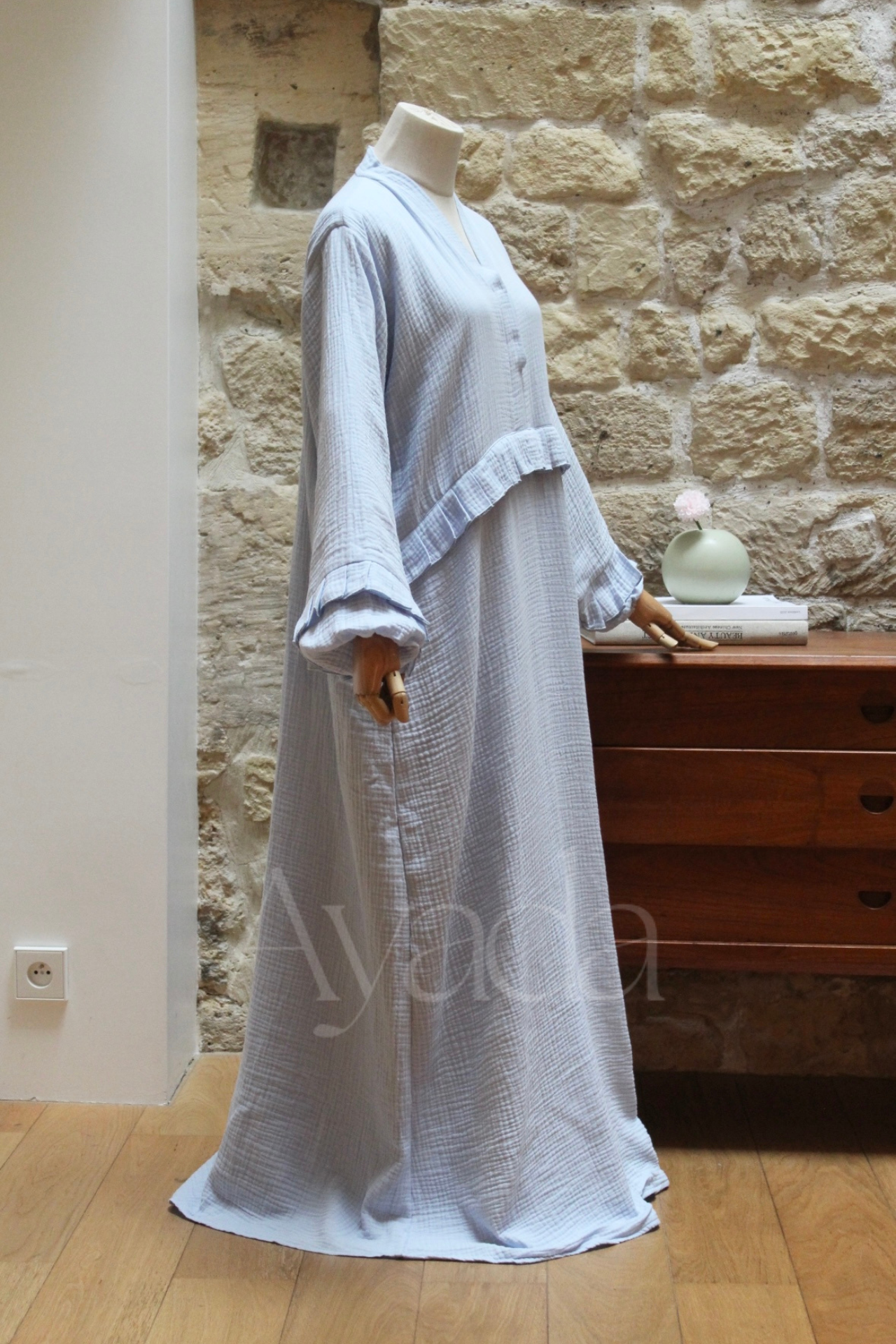 Discover our collection of 100% natural cotton gauze, handmade in the United Arab Emirates, designed for warmth and sensitive skin. An airy, breathable fabric with a delicately crinkled drape that lives with you all summer long. Some lighter shades are lined to prevent see-through, quality down to the details.