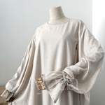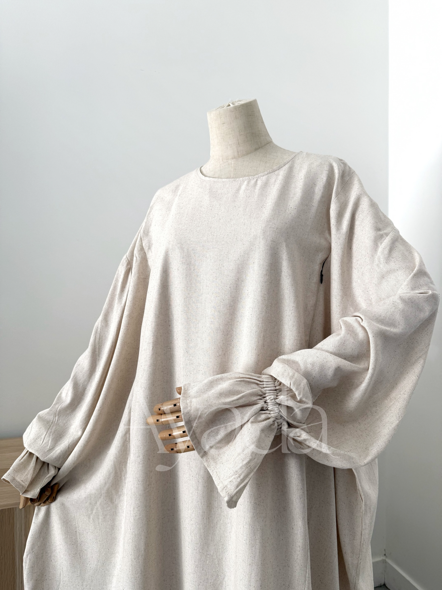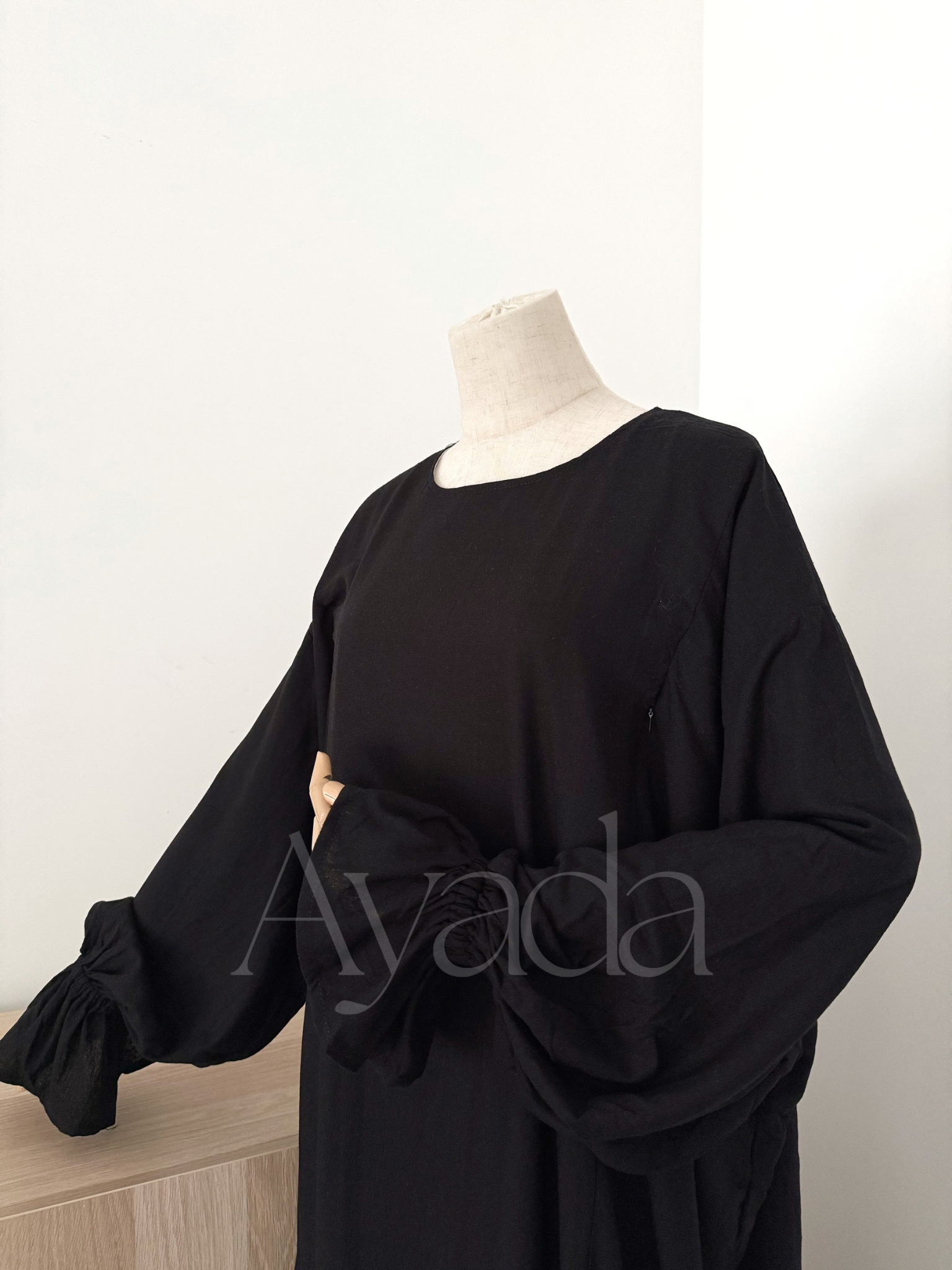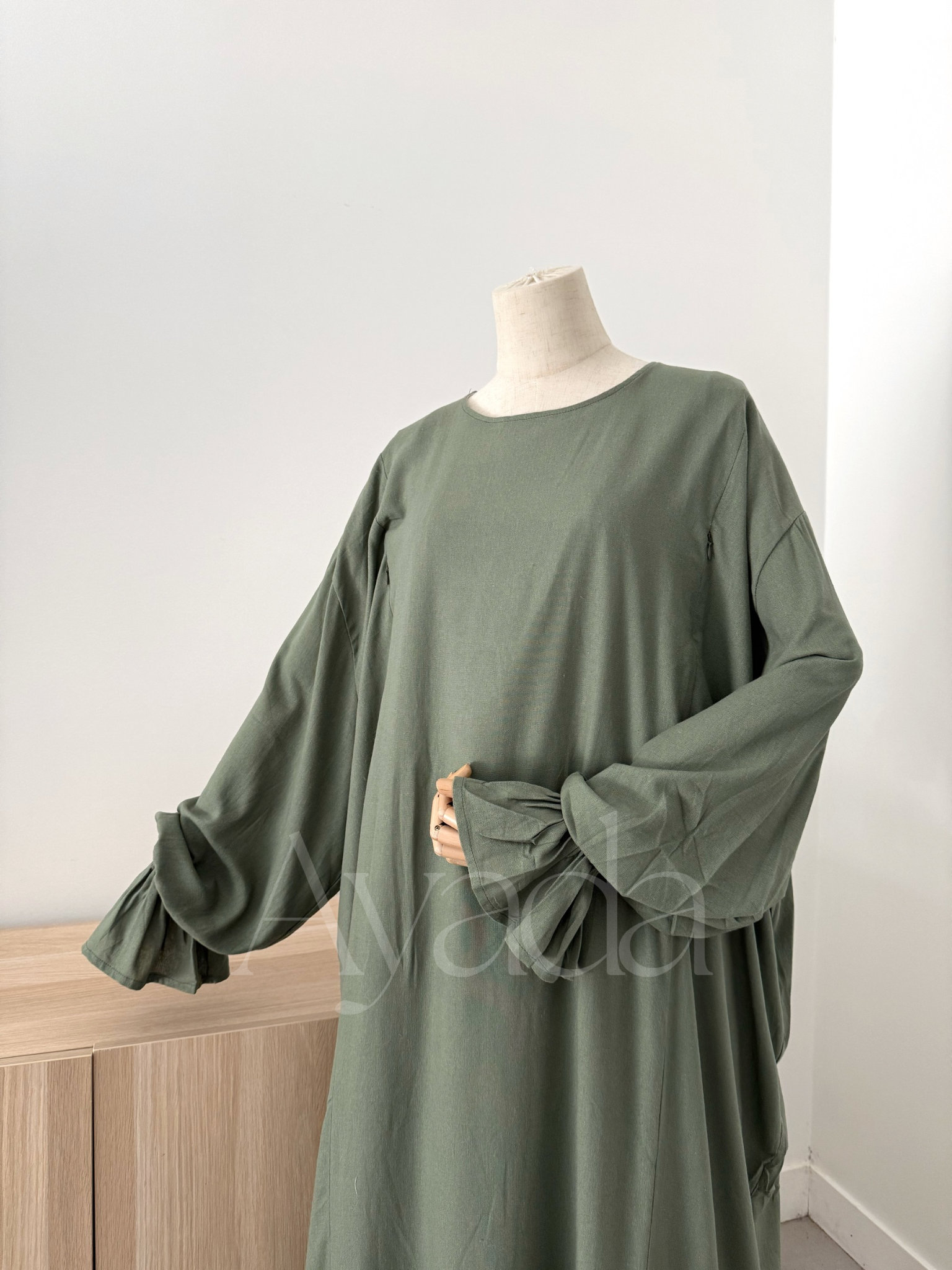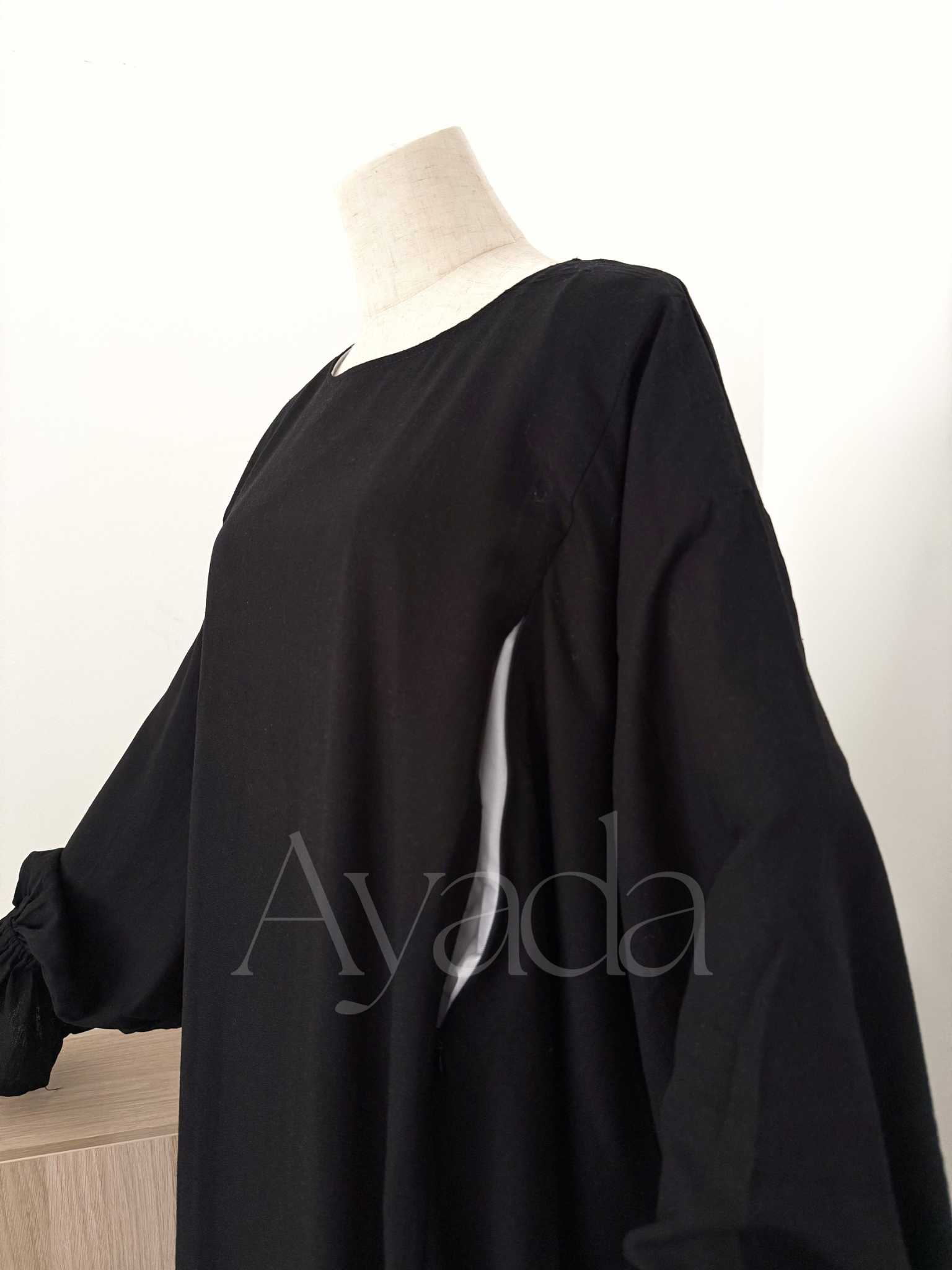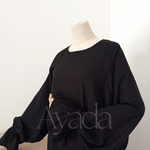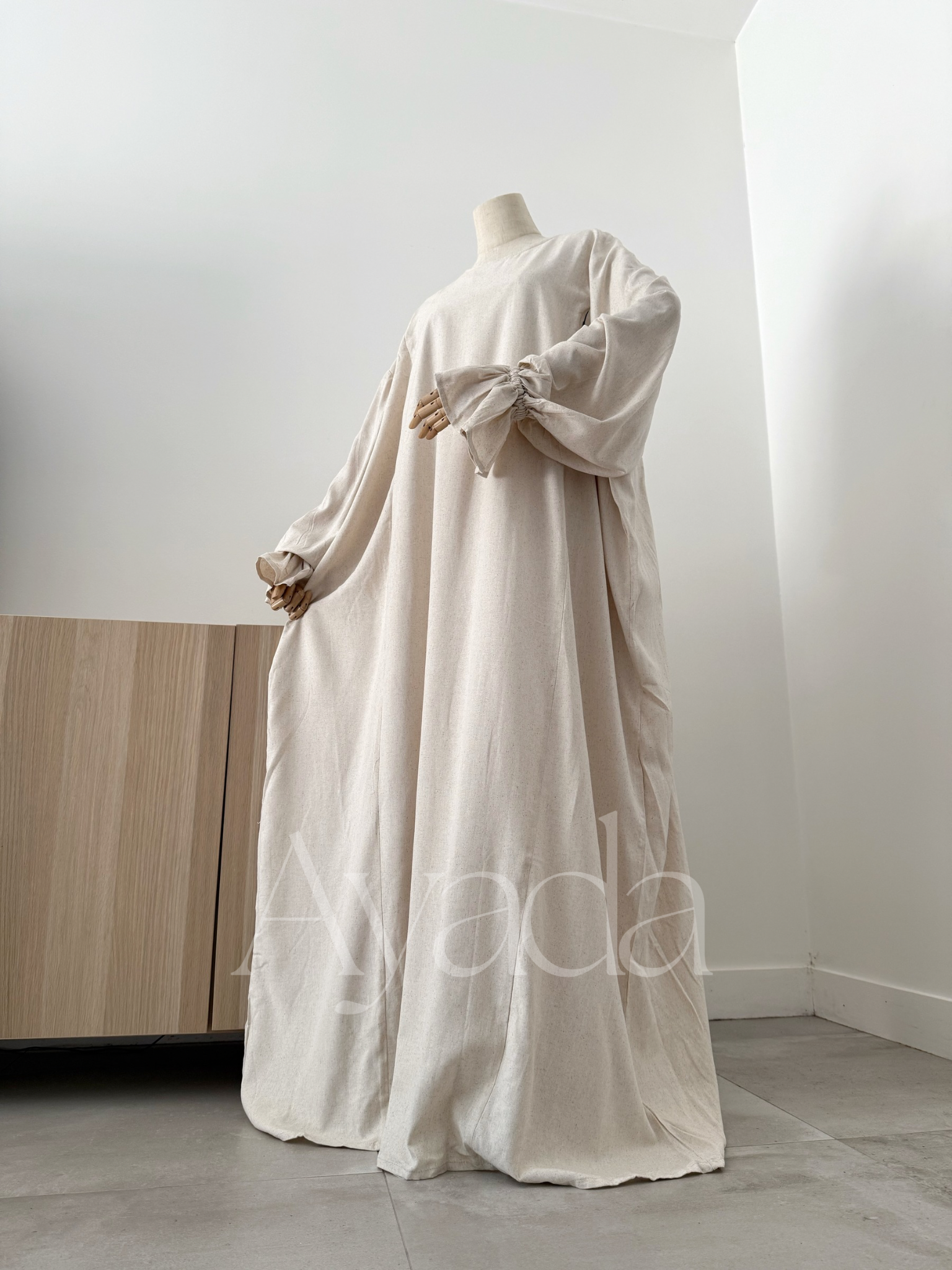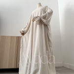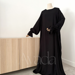 A pretty abaya that makes its debut at AYADA, in a blend of Linen (15%) - Viscose (80%) as well as Cotton (5%). The mixture of these different materials makes the fabric fluid and light.