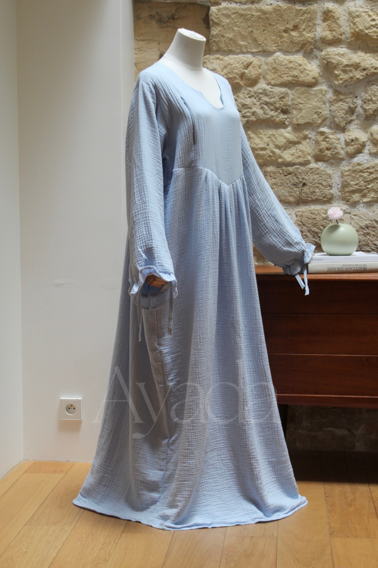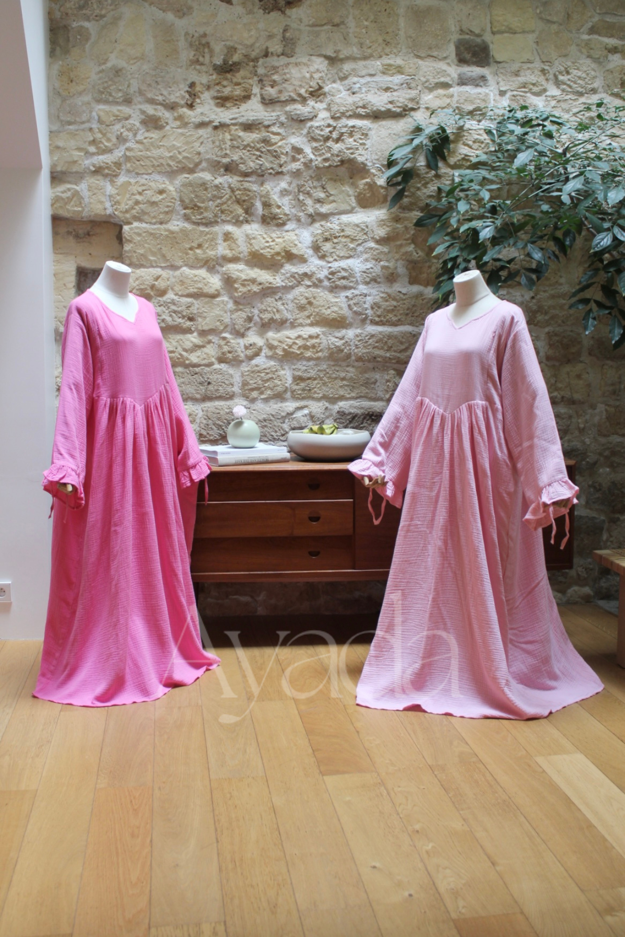 Discover our collection of 100% natural cotton gauze, handmade in the United Arab Emirates, designed for warmth and sensitive skin. An airy, breathable fabric with a delicately crinkled drape that lives with you all summer long. Some lighter shades are lined to prevent see-through, quality down to the details.