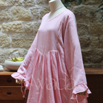 Very light tones can become slightly transparent in direct sunlight, so we add a lightweight cotton lining to ensure comfort and peace of mind, without losing the fluidity of the fabric.
