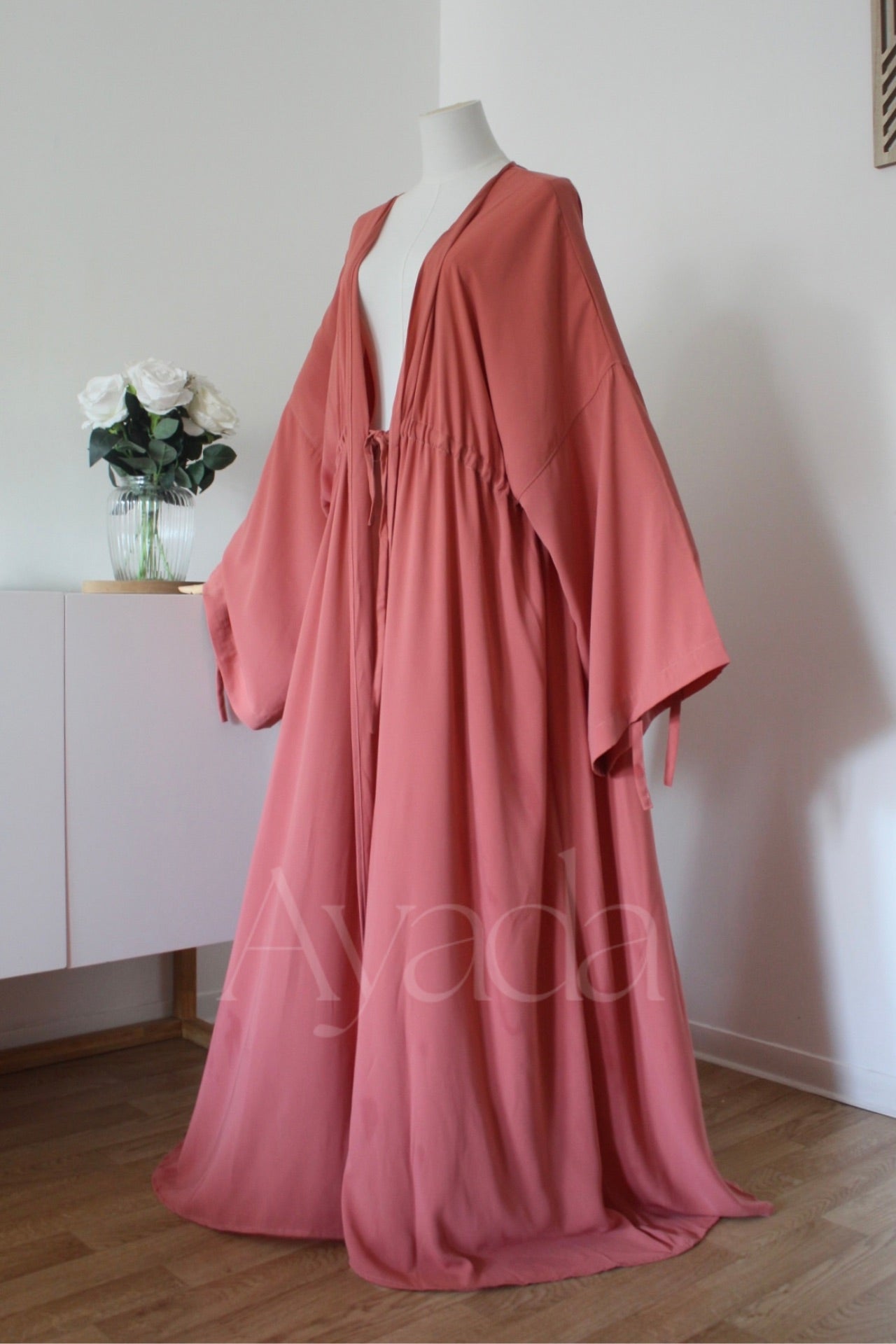 Saya Long Kimono, a simple little kimono but it makes all the difference with its strings that you can tighten to cinch it and loosen to wear it normally!!