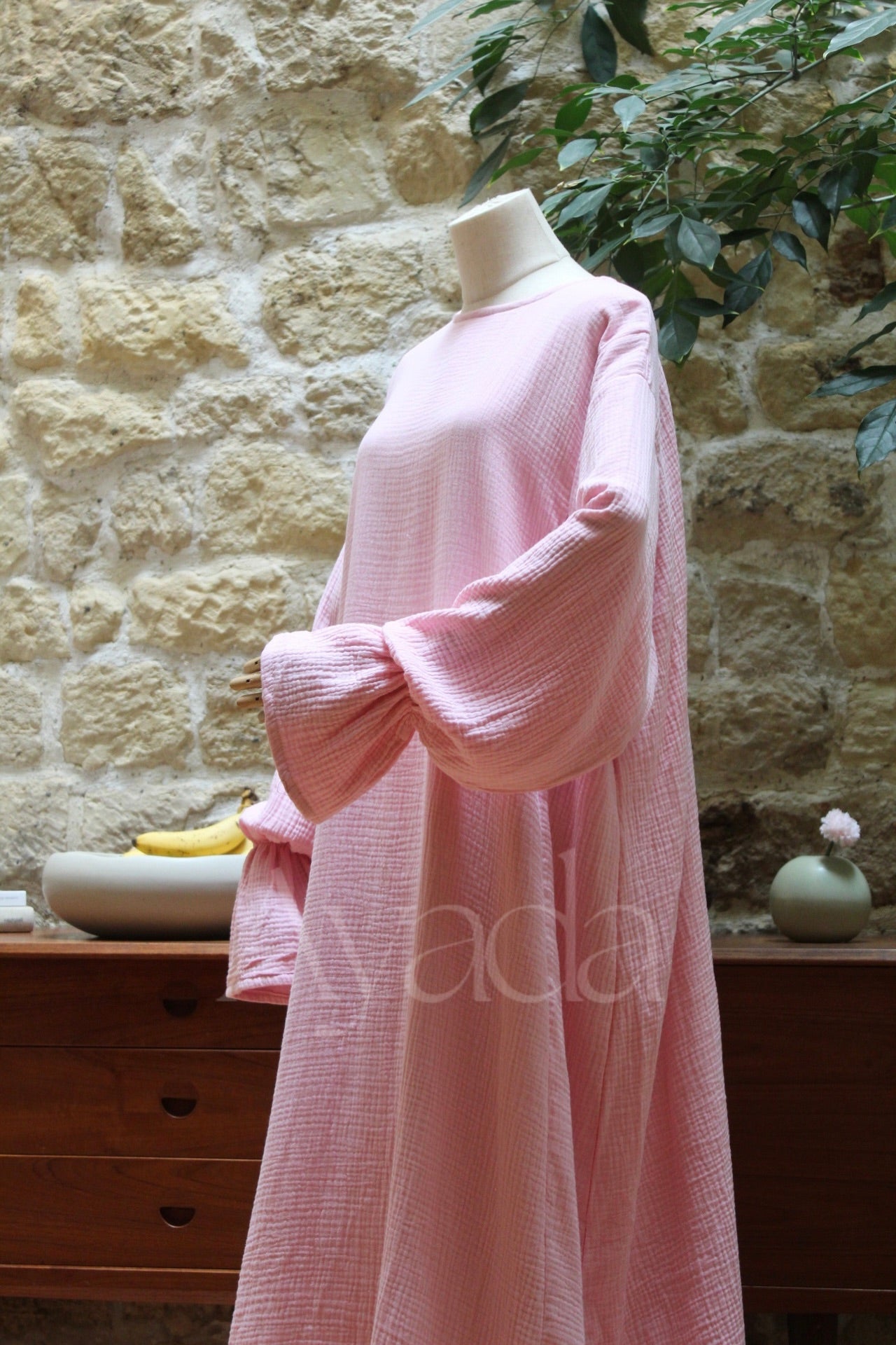 Very light tones can become slightly transparent in direct sunlight, so we add a lightweight cotton lining to ensure comfort and peace of mind, without losing the fluidity of the fabric.