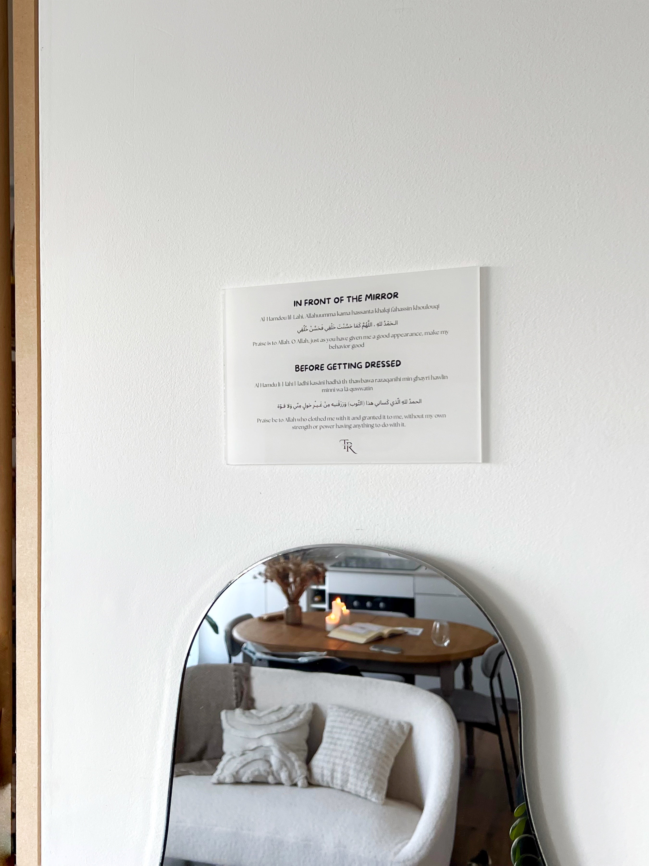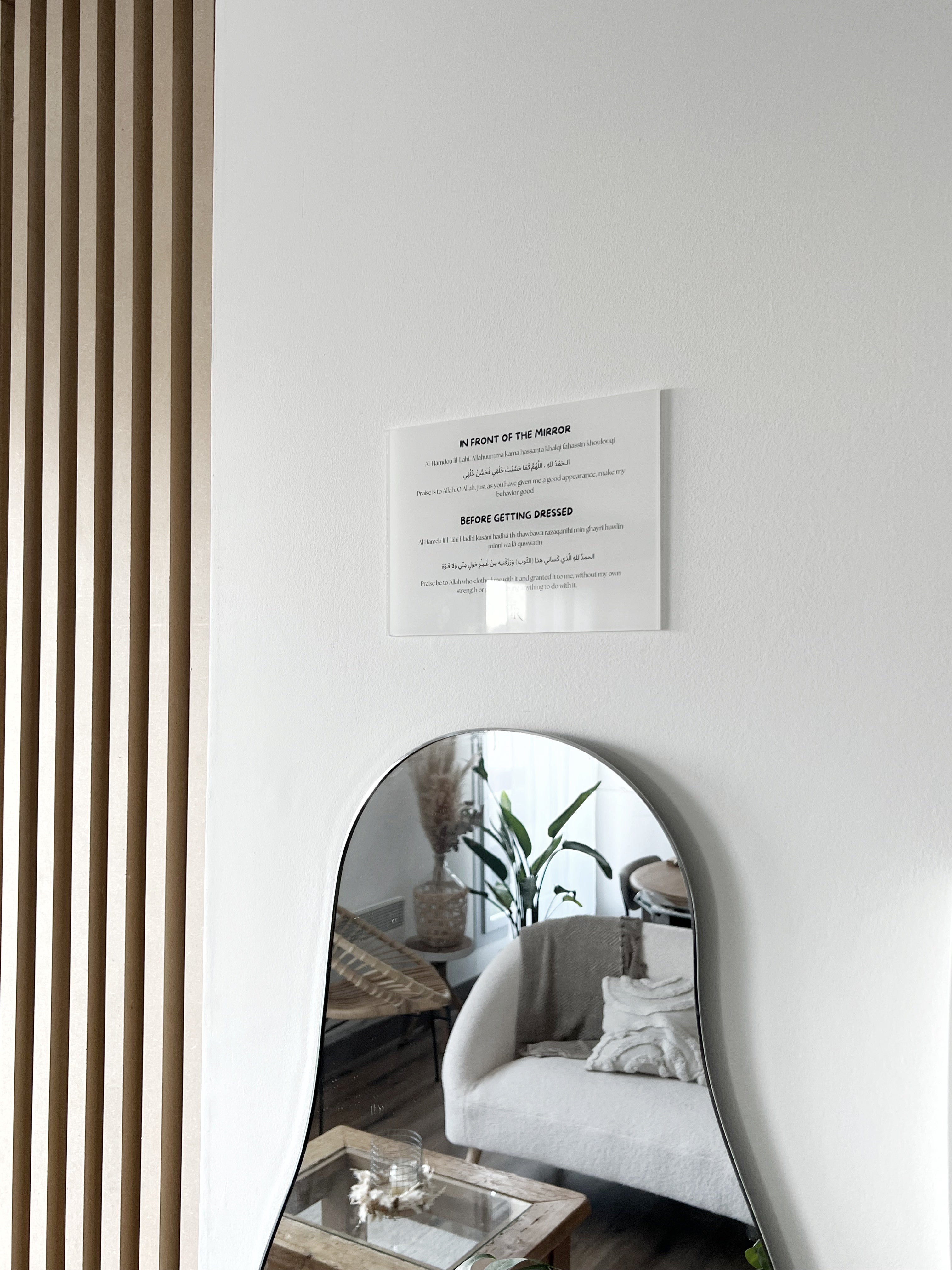 Bring a spiritual reminder to a space often overlooked with this board featuring the invocations to recite before and after using the bathroom. Designed to accompany you in your daily life, this practical and decorative piece is perfect for building habits, offering daily protection, and strengthening your connection with Allah.