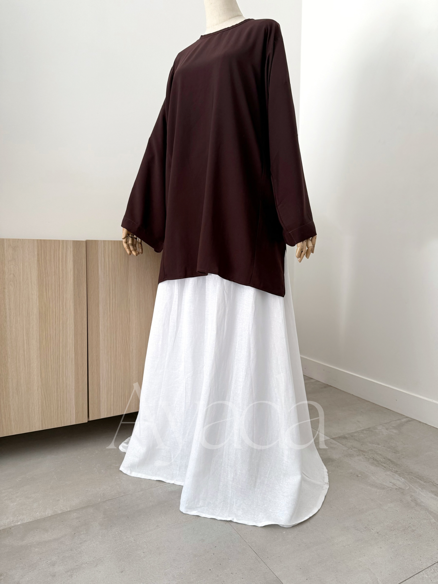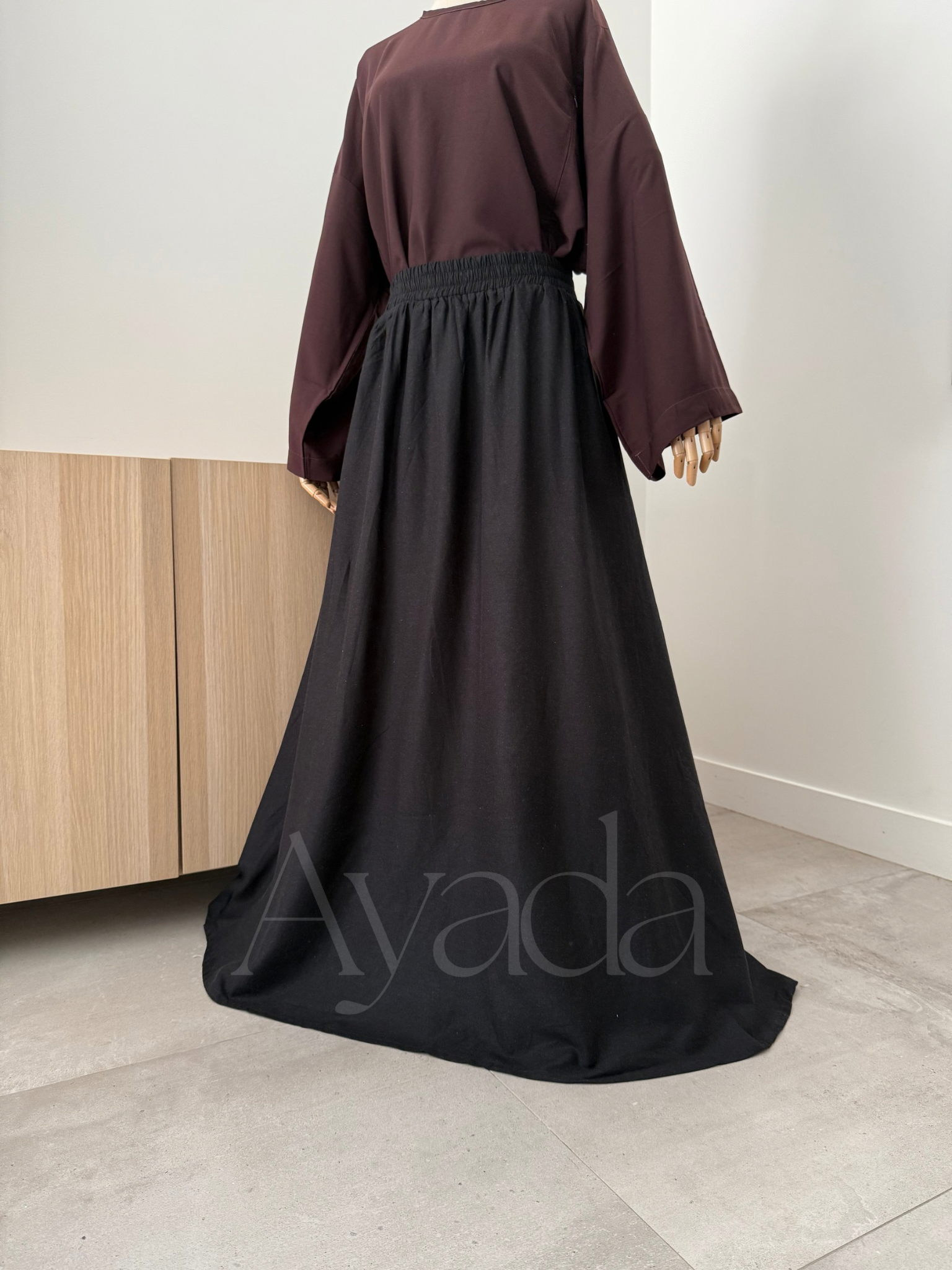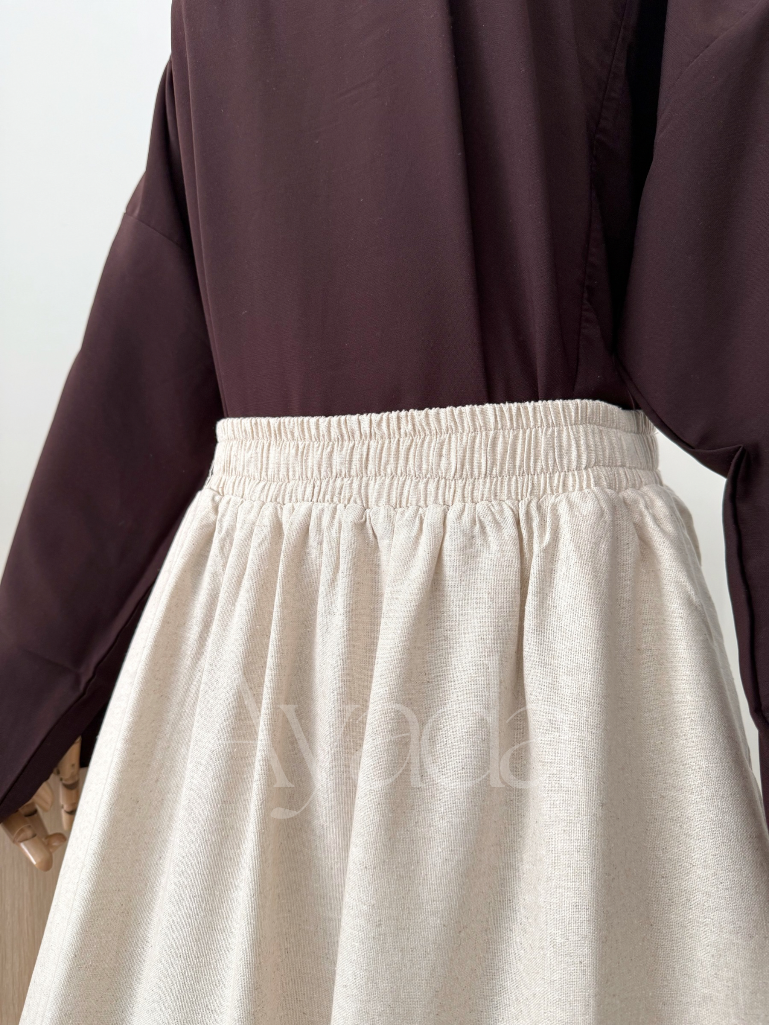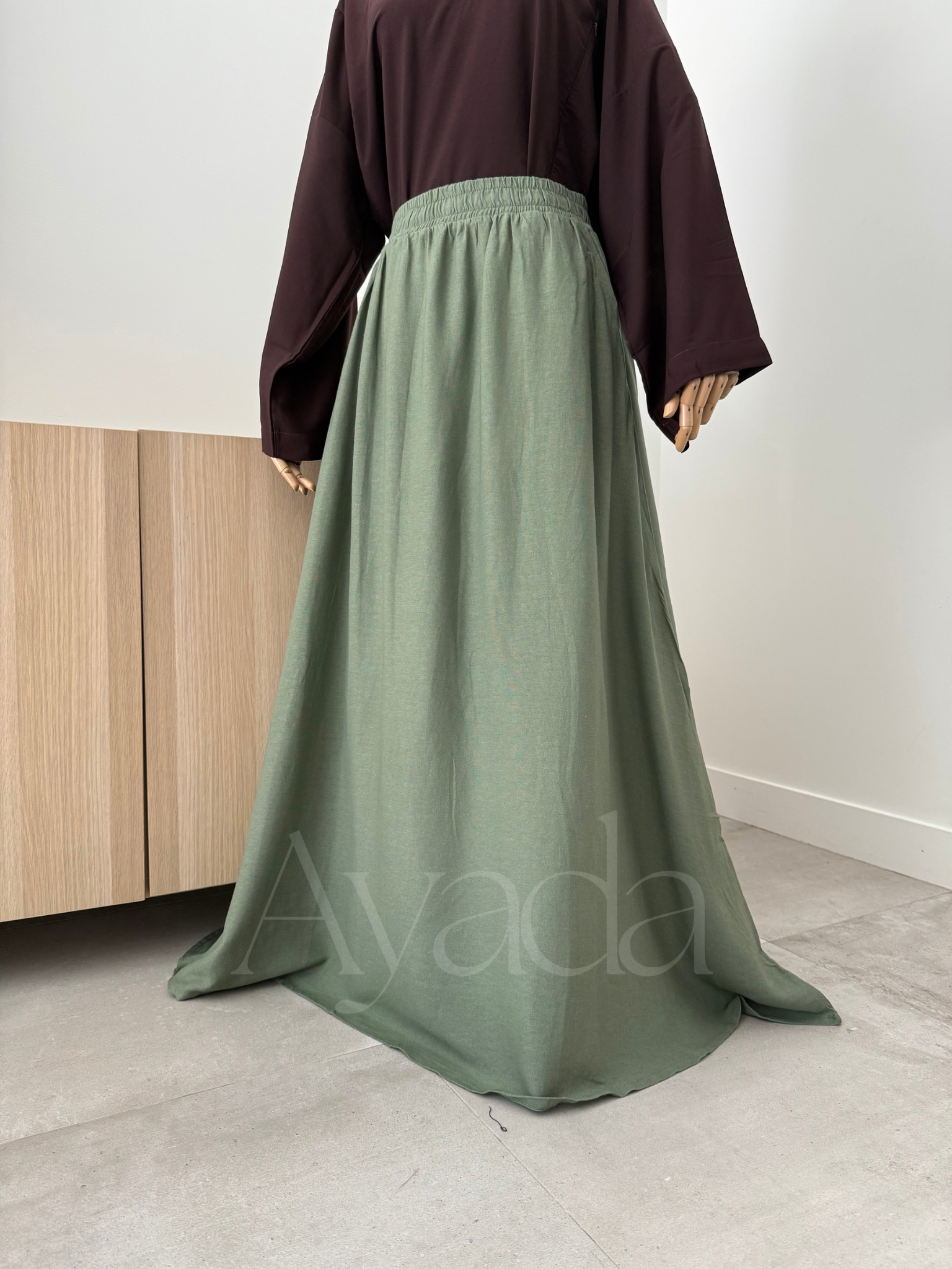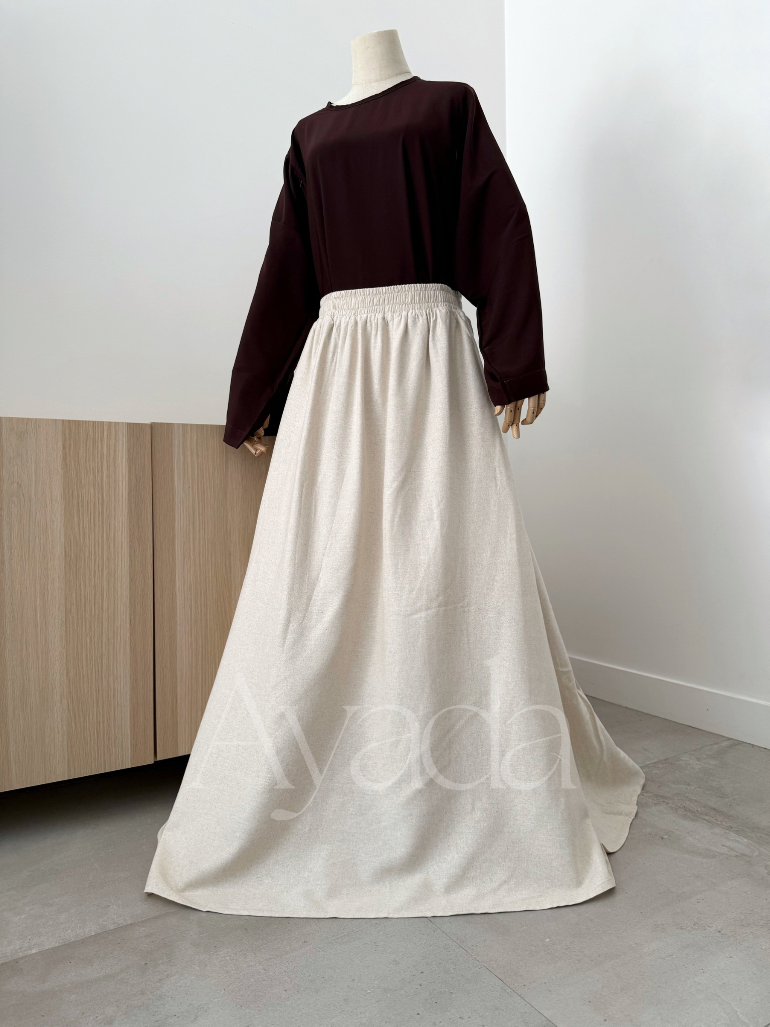 Une jolie Jupe qui fait son entrée chez AYADA, dans un tissu mélangé de Lin (15%) - Viscose (80%)  ainsi que du Coton (5%). Le mélange de ces différentes matières rendent le tissu fluide et léger.
